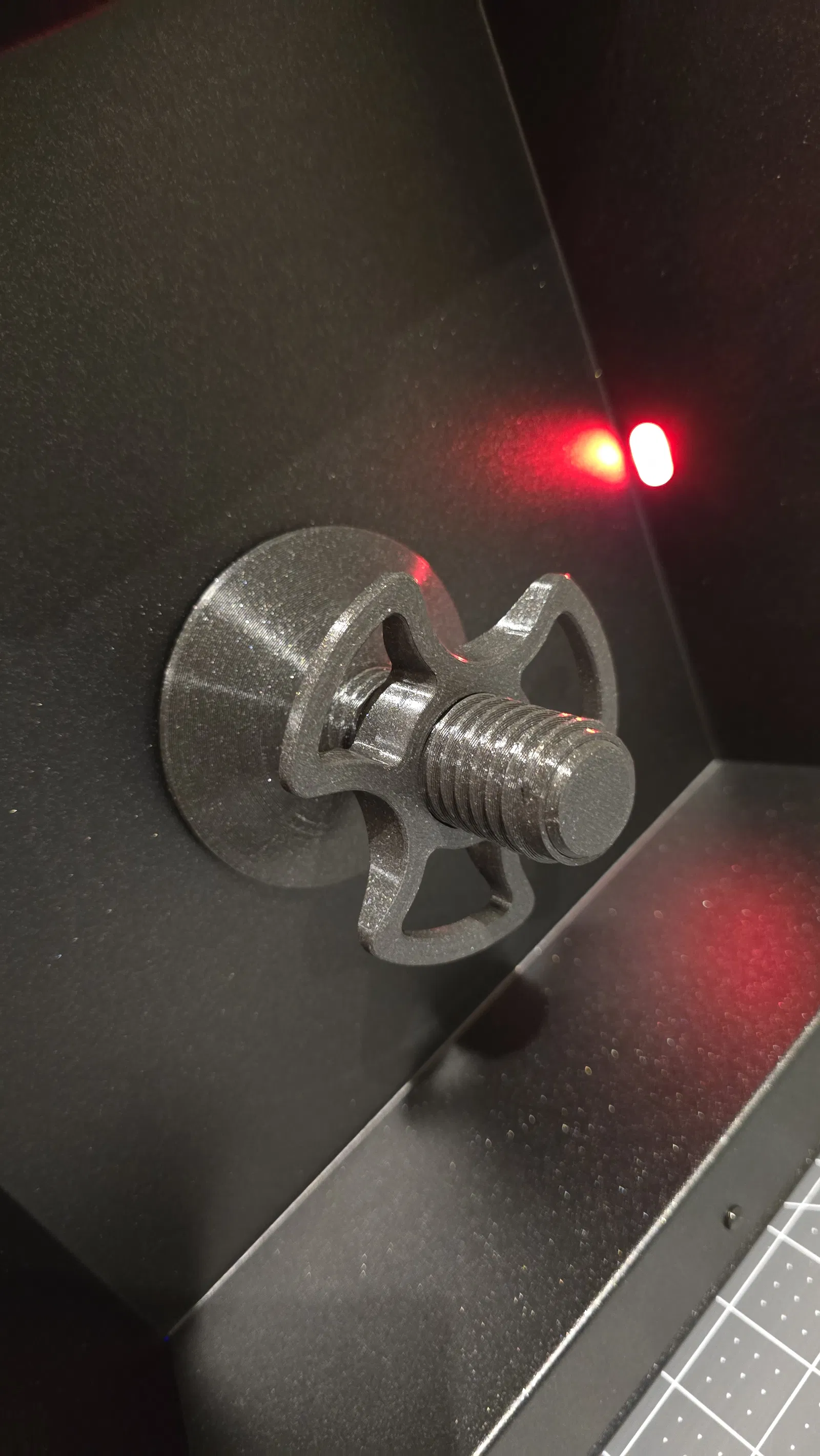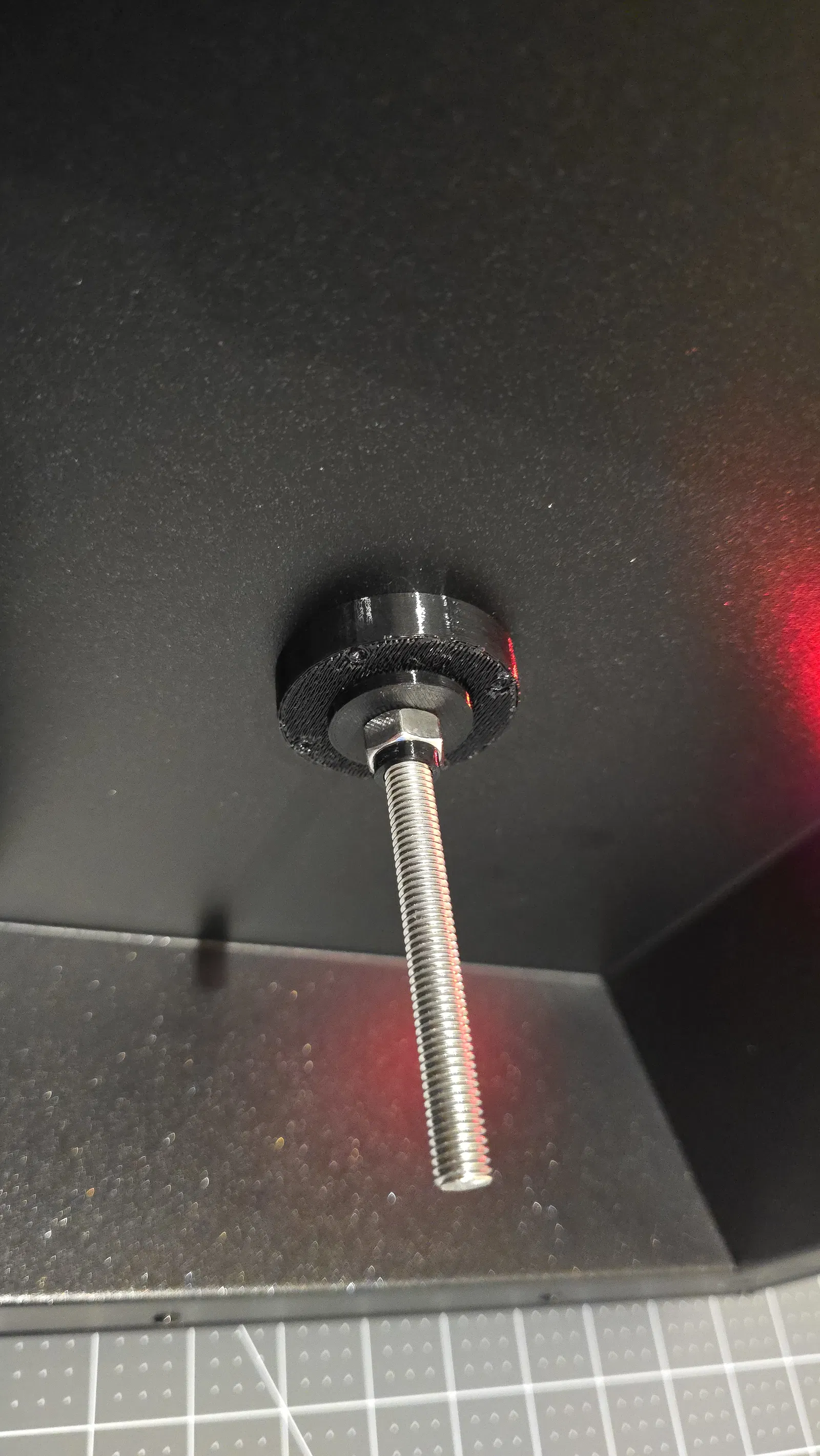 Vặn bu-lông M8 vào đế cho đến khi chặt. Sử dụng hai đai ốc khóa lại với nhau trên ren để vặn bu-lông cho đến khi đầu bu-lông nằm phẳng hoặc lún sâu vào trong đế.