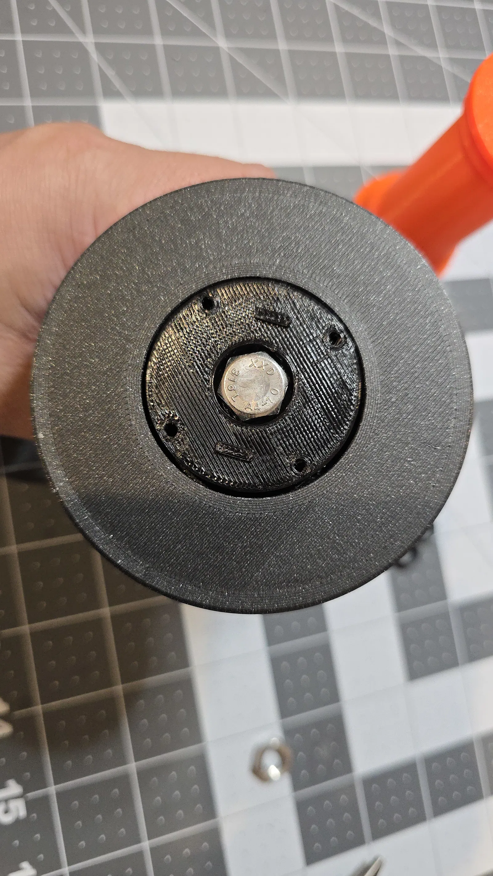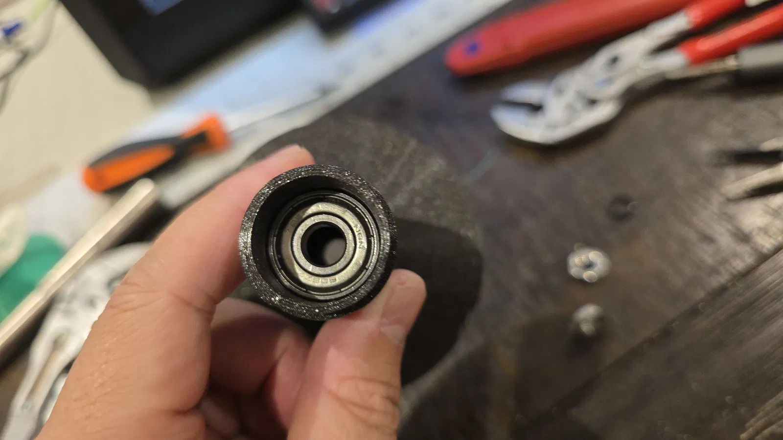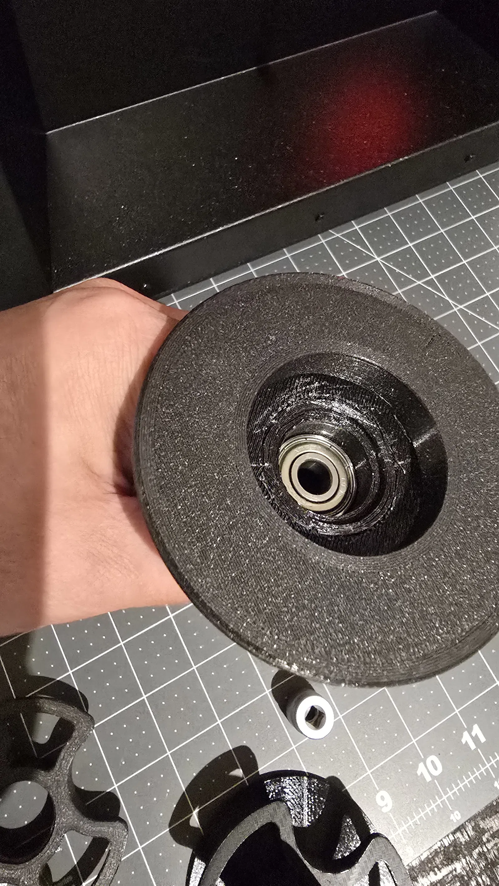 Loại bỏ hết vật liệu hỗ trợ (support). Nhấn một vòng bi 608 vào mỗi bên của phần lõi trung tâm.