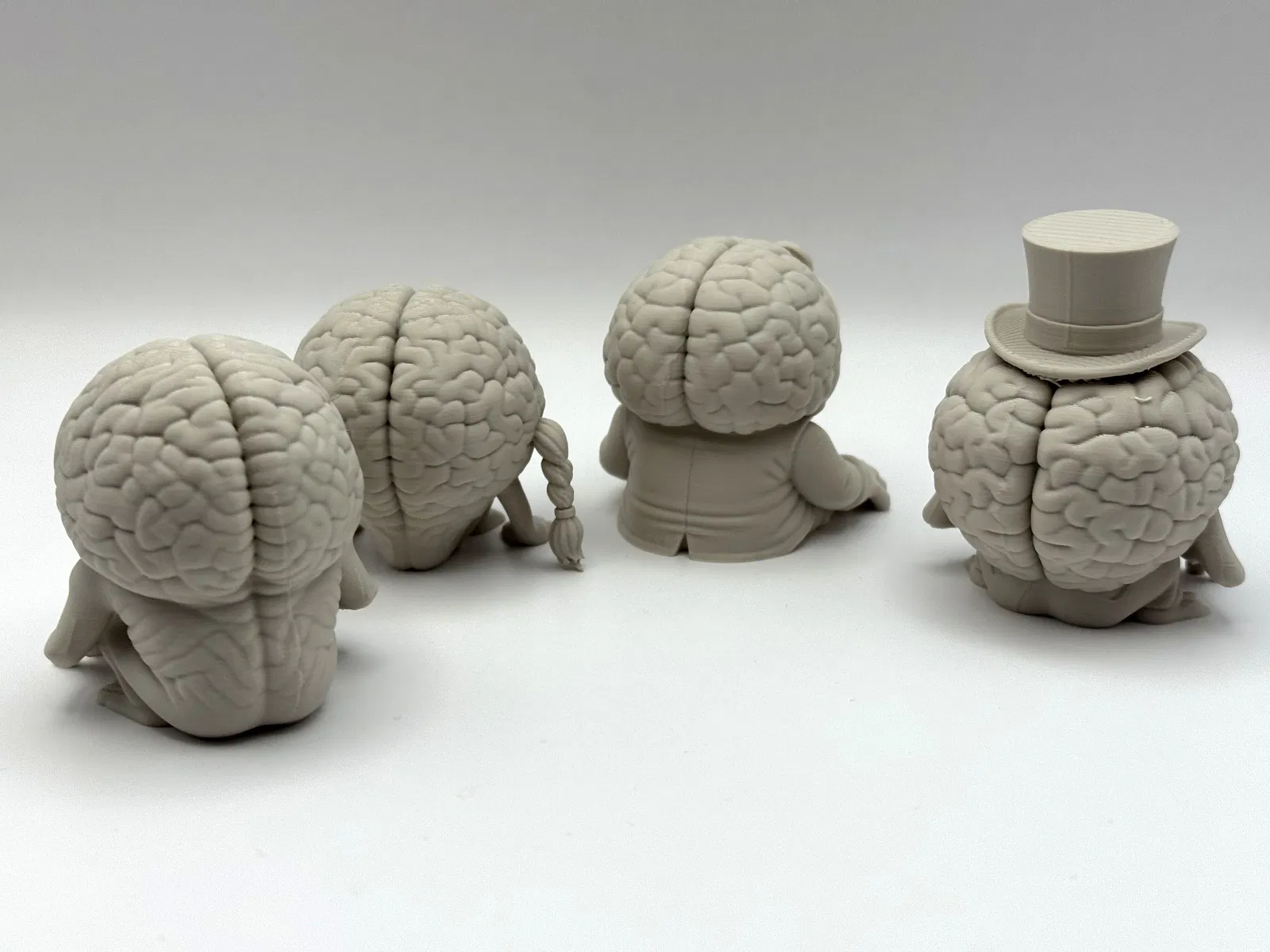 Tại sao lại chọn mấy mô hình não bộ nhàm chán khi bạn có thể sở hữu ngay dàn nhân vật thiên tài đầy điên rồ này? Bộ Sưu Tập Brainy Figure bao gồm bốn nhân vật có vẻ ngoài cực kỳ ấn tượng, với bộ não phóng đại, biểu cảm gương mặt sinh động cùng cá tính riêng biệt không lẫn vào đâu được.