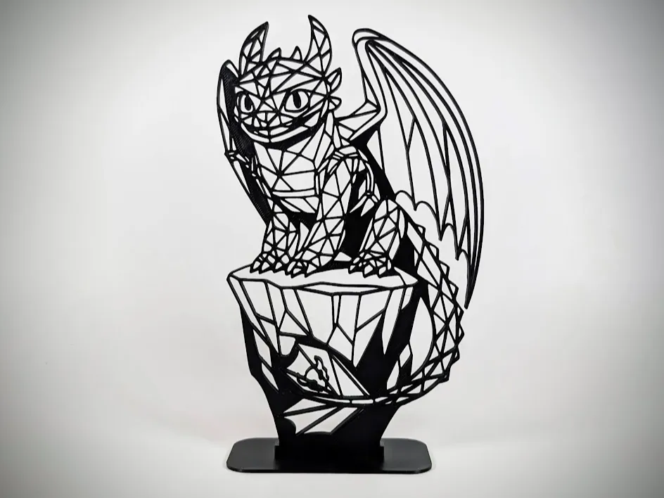 Mang chú rồng Toothless về góc bàn của bạn với mẫu in 3D Low Poly Geometric đầy hiện đại. Thiết kế góc cạnh sắc sảo, đi kèm đế trưng bày. Sản phẩm hoàn hảo cho fan dòng phim How to Train Your Dragon và những người yêu thích nghệ thuật trang trí tối giản.