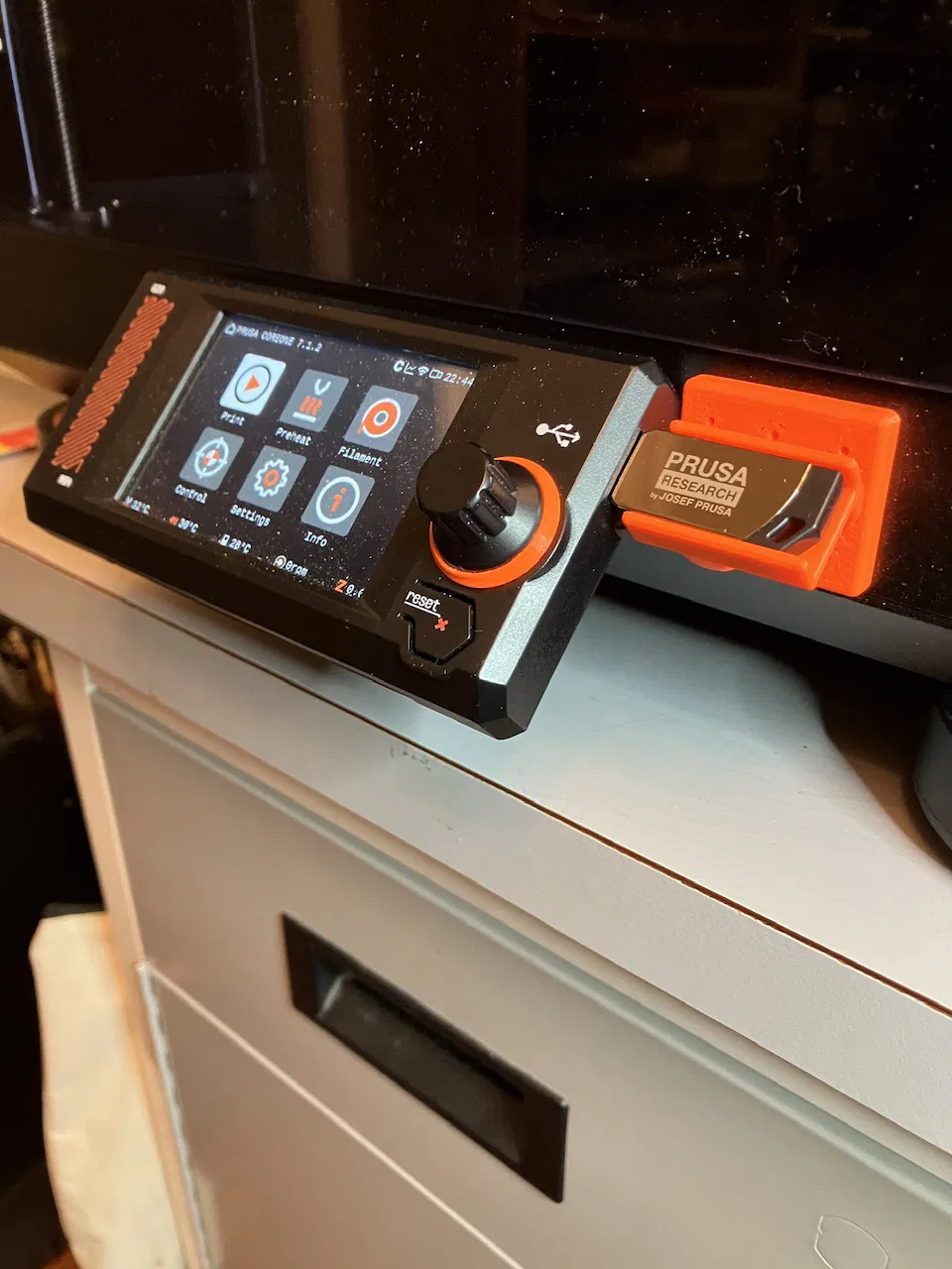Nếu anh em đang sở hữu chiếc máy in 3D Prusa Core One và thường xuyên sử dụng ổ USB để nạp file in, chắc hẳn anh em sẽ hiểu cảm giác lo lắng khi cổng USB bị va quệt hoặc ổ cắm bị lỏng lẻo do tác động ngoại lực. Phụ kiện "Prusa Core One USB Support and Protector" này chính là giải pháp đơn giản nhưng cực kỳ hiệu quả để bảo vệ cổng kết nối của máy, giúp ổ USB nằm chắc chắn và an toàn hơn ngay trên khung máy in. Thiết kế này được tùy chỉnh riêng cho dòng Core One, giúp việc gắn kết trở nên vừa vặn và thẩm mỹ hơn hẳn so với việc để ổ USB cắm hờ hững.