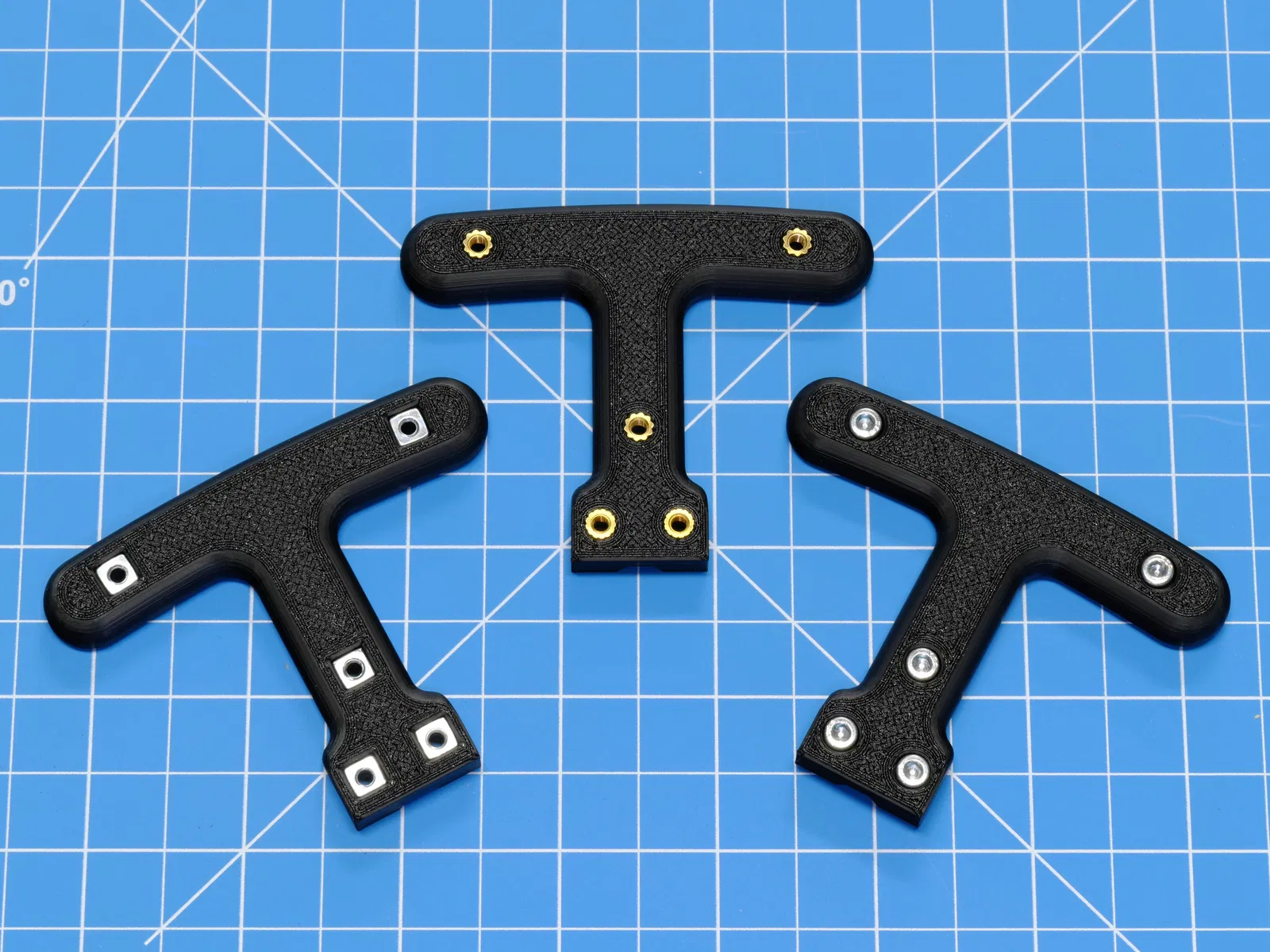 Mình đã cập nhật thiết kế để sử dụng ốc lục giác chìm (socket head cap screws) và đai ốc vuông (square nuts). Tất nhiên, ốc đầu dù (button head screws) vẫn dùng được. Với kinh nghiệm tích lũy, mình cũng đã cải tiến file CAD giúp thiết kế ổn định hơn, khó bị lỗi khi chỉnh sửa hơn. Độ dài của ốc giờ đây sẽ quyết định độ dày của tay cầm và mình cũng đã kiểm tra kỹ để đảm bảo độ dài tay cầm là phù hợp.