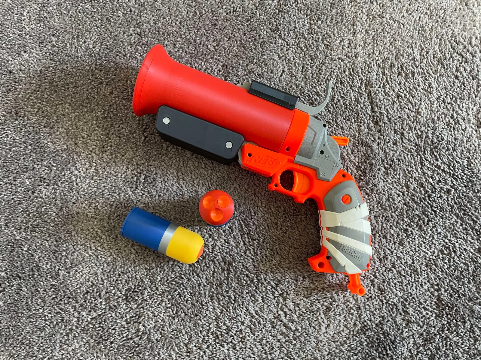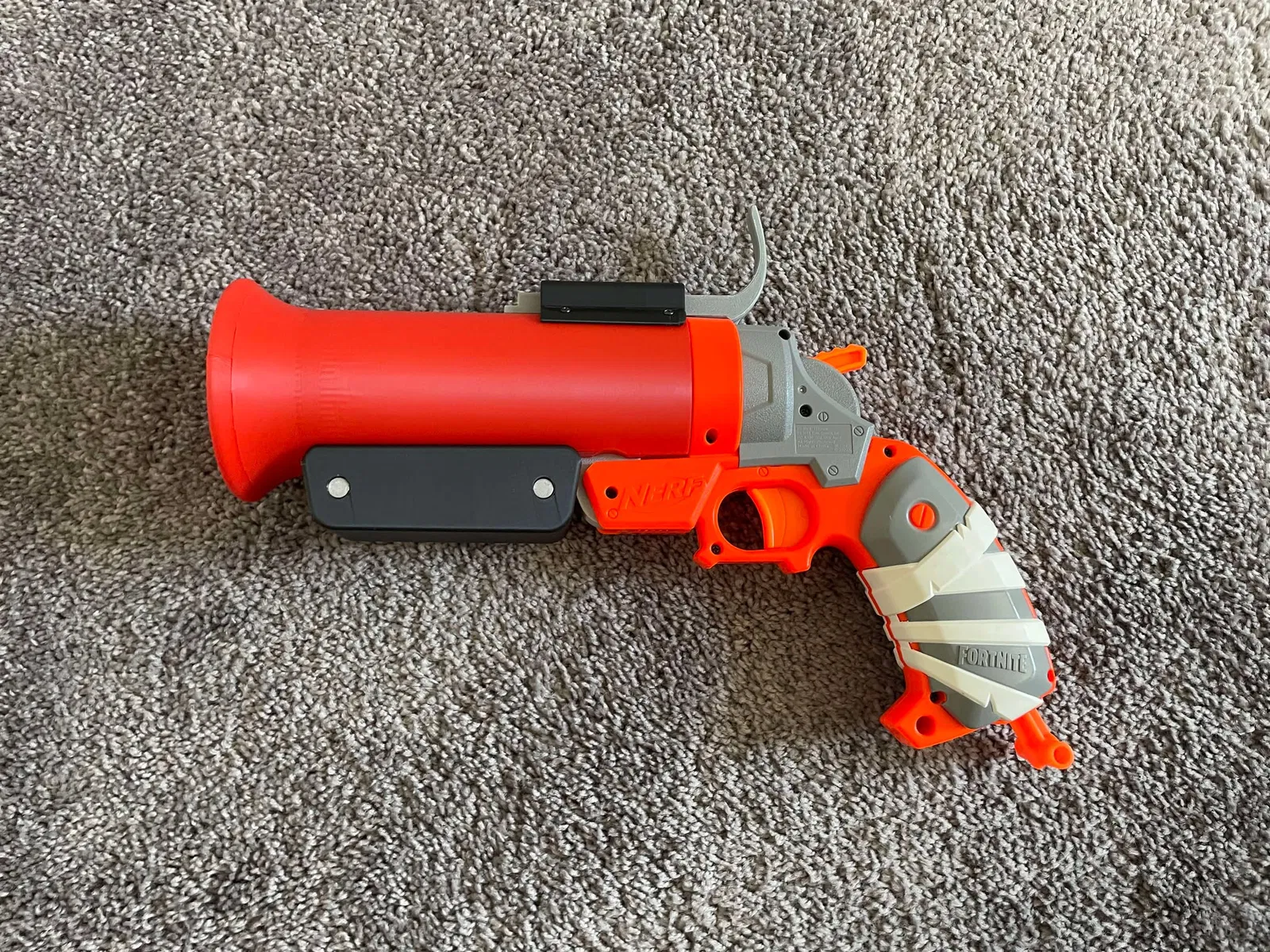 Bạn sẽ cần tháo bỏ phần trụ gắn phi tiêu (dart post) và chốt trên cùng để đạt được trạng thái như hình. Bạn có thể lắp phần tay cầm, báng súng, nòng và khớp nối (cần dùng keo), cộng với một miếng đệm in 3D nhỏ cho khớp nối.