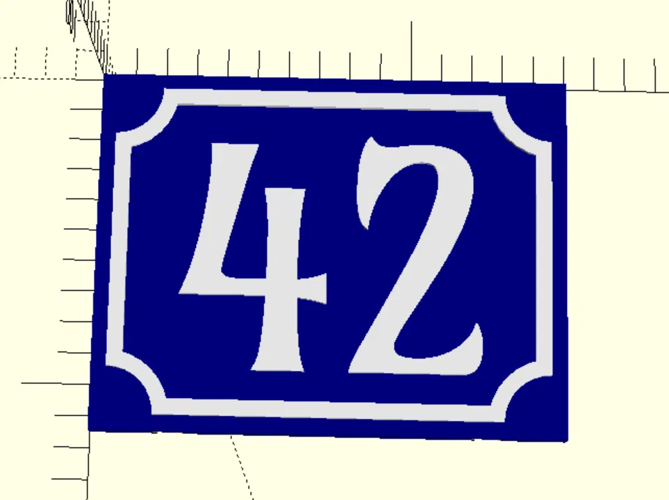 Cập nhật 04/05/2025: Sau chuyến đi Paris, tôi có ý tưởng thêm tùy chọn mặt biển phong cách Pháp. Tôi dùng phông "Amarante" (trên Google Fonts) để tạo nét "Art Nouveau", nhưng bất kỳ phông nào có chân chữ dày và nét mảnh cũng sẽ ổn. Bạn có thể điều chỉnh độ dày cạnh và kích thước góc trong thông số của file .scad.