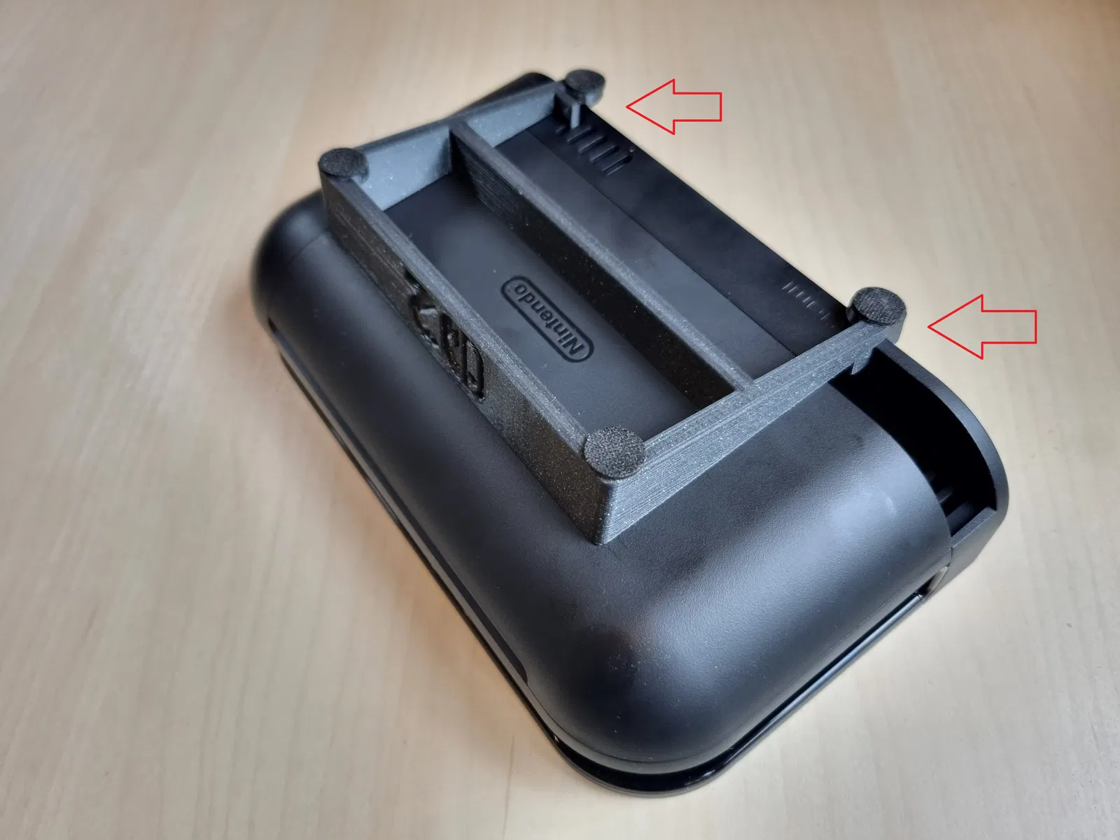 Giúp chiếc Switch 2 của bạn vừa vặn nằm gọn trong kệ tivi! Đây là giá đỡ dock nằm ngang dành cho Nintendo Switch 2, được thiết kế với các tính năng chống trượt. Giá đỡ giữ dock cố định một cách nhẹ nhàng, các bạn có thể xem các mũi tên màu đỏ trong ảnh để biết vị trí. Ngoài ra, giá còn có tùy chọn lắp thêm chân đế cao su 12 mm ở bên dưới.