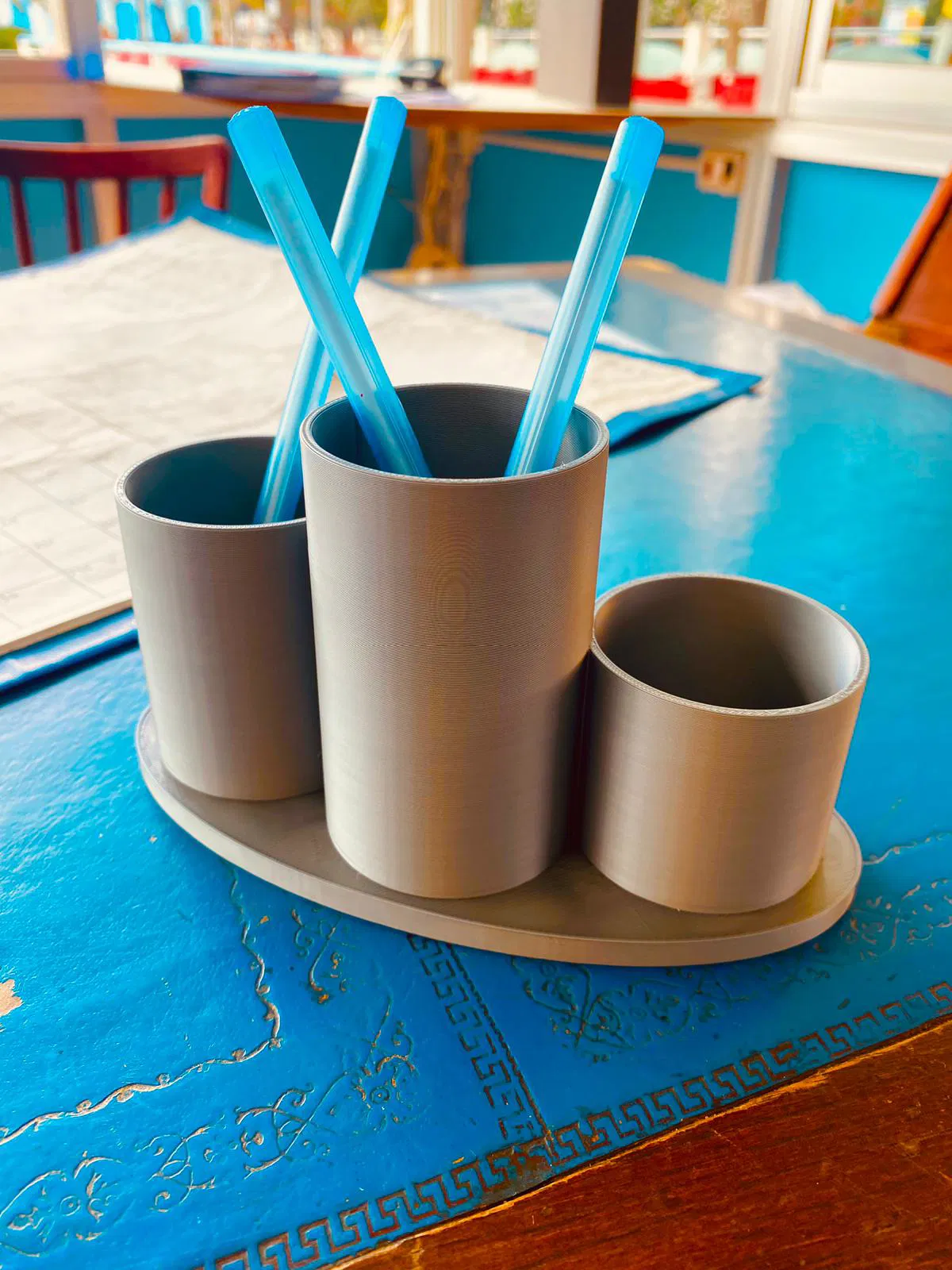 Một chiếc khay đựng đồ trang điểm và cọ trang điểm với thiết kế hiện đại, chắc chắn. Rất dễ in.