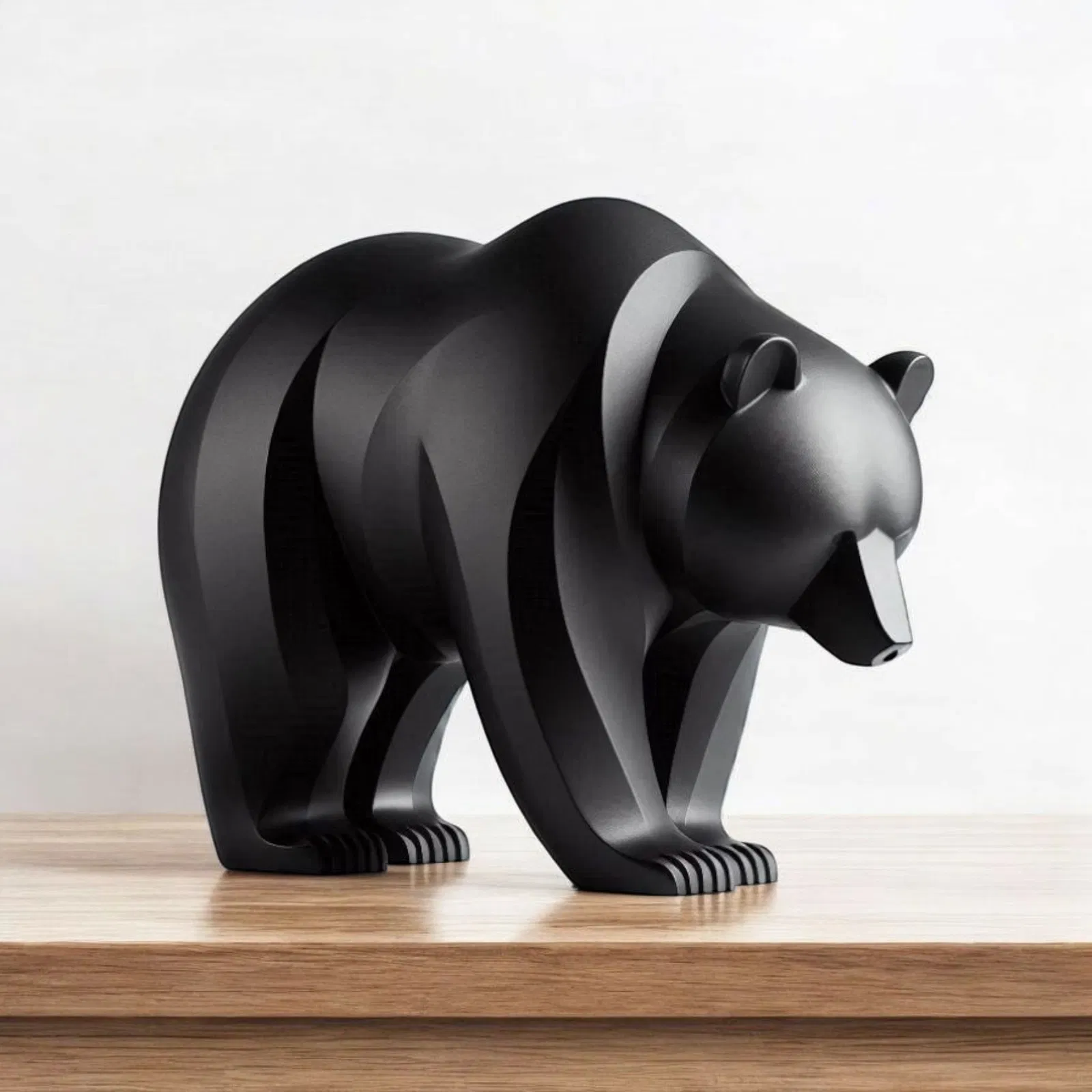 Đây là một mẫu tượng gấu được thiết kế theo phong cách tối giản cực kỳ ấn tượng. Chú gấu trông rất mạnh mẽ, thâm trầm, và có phần suy tư. Tác phẩm điêu khắc này mang đến cho hình ảnh chú gấu một nét chấm phá rất riêng nhờ vào những đường nét cong tối giản tinh tế.