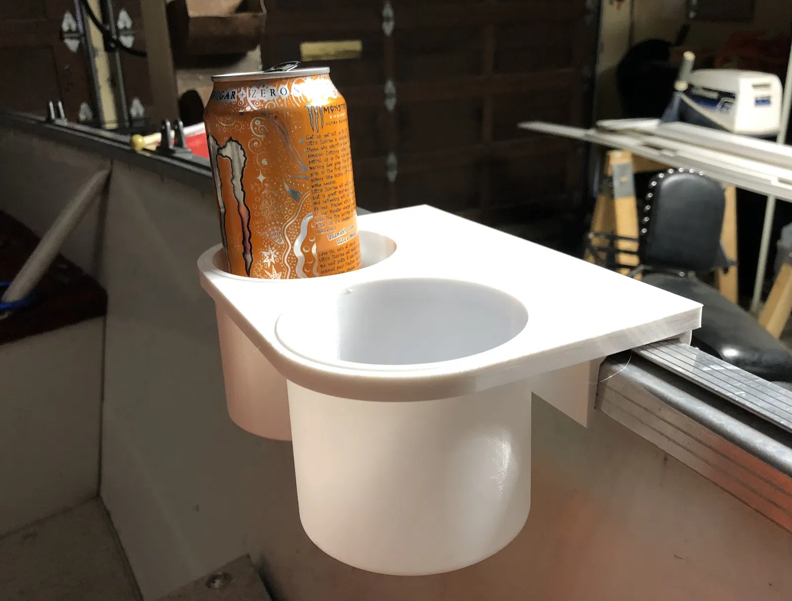 Một mẫu giá đỡ cốc tiện lợi dành cho thuyền, có thể giữ một hoặc hai cốc/lon. Thiết kế dạng kẹp thông minh giúp gắn chặt vào thanh chắn bên hông thuyền. Các file được cung cấp riêng biệt để bạn dễ dàng tùy chỉnh kích thước theo nhu cầu thực tế.