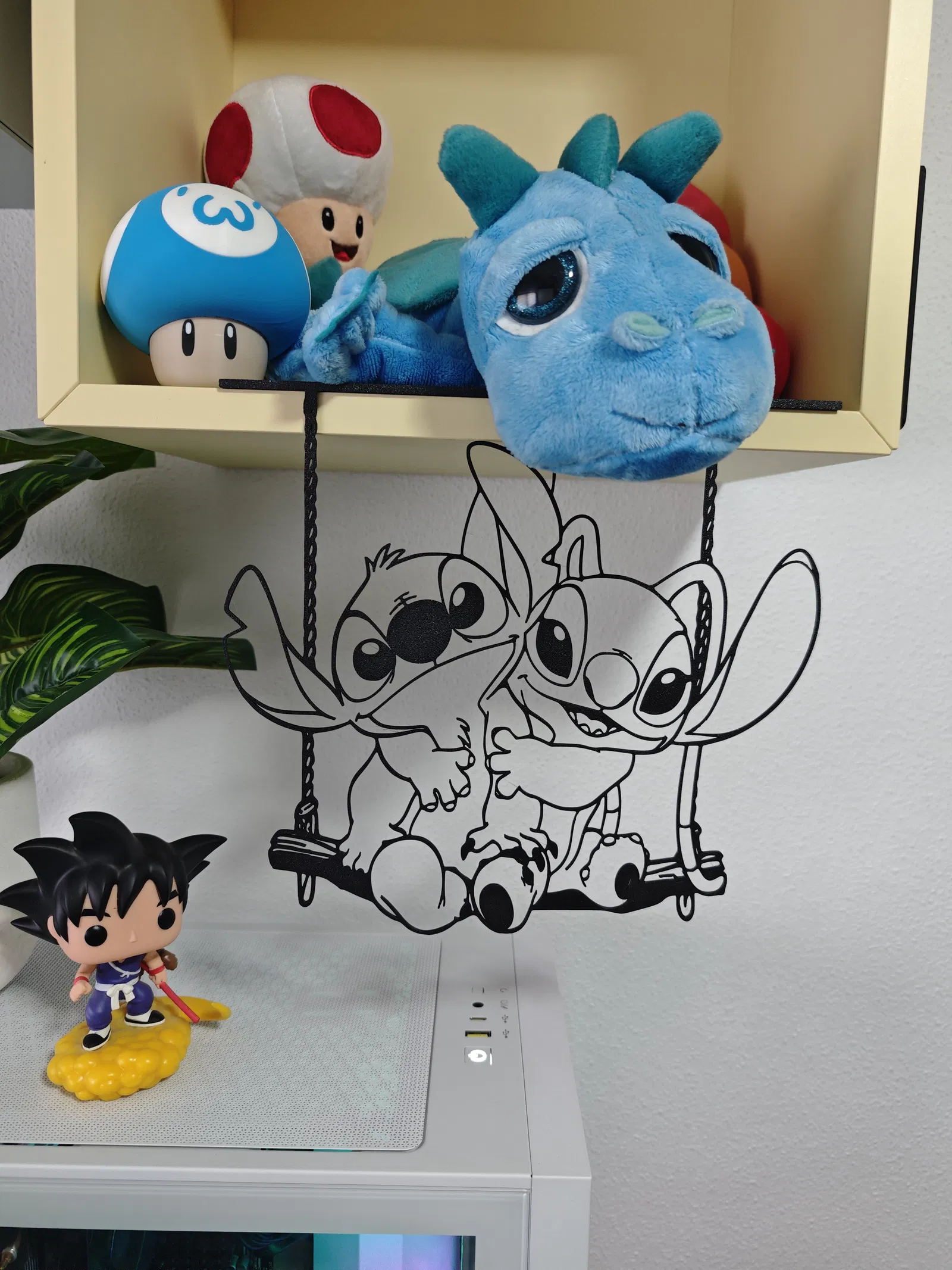 Mang không khí vui tươi của Lilo & Stitch vào không gian sống của bạn với mẫu trang trí treo tường Stitch và Angel vô cùng đáng yêu. Đây là một thiết kế in 3D theo dạng line art tối giản, mô tả khoảnh khắc ngọt ngào của Stitch và Angel khi cùng ngồi trên chiếc xích đu. Sản phẩm có tính ứng dụng cao, dễ dàng treo trên tường, cửa ra vào hoặc mép kệ trang trí. Với cấu trúc phẳng và mảnh, mẫu in này không chỉ mang tính thẩm mỹ cao mà còn rất dễ lắp đặt, phù hợp cho những ai yêu thích phong cách trang trí nhà cửa hiện đại và đầy cá tính. Hãy cùng in ngay một chiếc để làm mới góc nhỏ của mình ngay hôm nay!