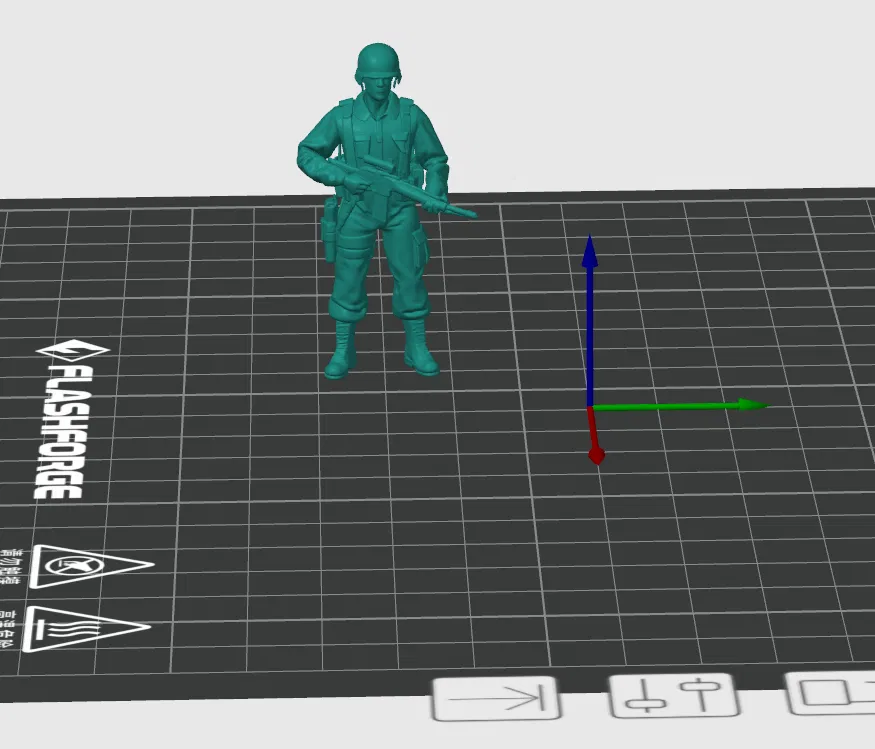 Điểm đặc biệt của file 3D này chính là sự linh hoạt về kích thước. Ở dạng mặc định, mô hình có kích thước nhỏ gọn, rất thích hợp để bạn in hàng loạt cùng lúc, tạo nên cả một tiểu đội quân nhân chỉ trong một lần chạy máy. Nếu bạn muốn trưng bày như một bức tượng nhỏ trên bàn làm việc, bạn có thể dễ dàng phóng to (resize) lên 200% để đạt chiều cao khoảng 5 inch (gần 13cm). Đây là kích thước lý tưởng để các đường nét chi tiết của mô hình hiện lên rõ ràng và sắc nét hơn.