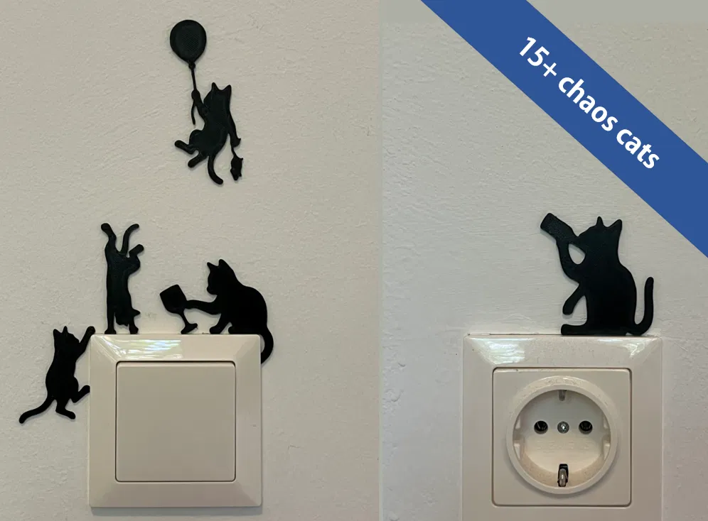 Mang không khí tiệc tùng vào căn phòng với bộ trang trí công tắc 3D hình mèo cực xinh. Dễ in, không cần support, phù hợp cho mọi ổ cắm tiêu chuẩn. Hãy cùng tạo nên sự khác biệt cho không gian sống của bạn!