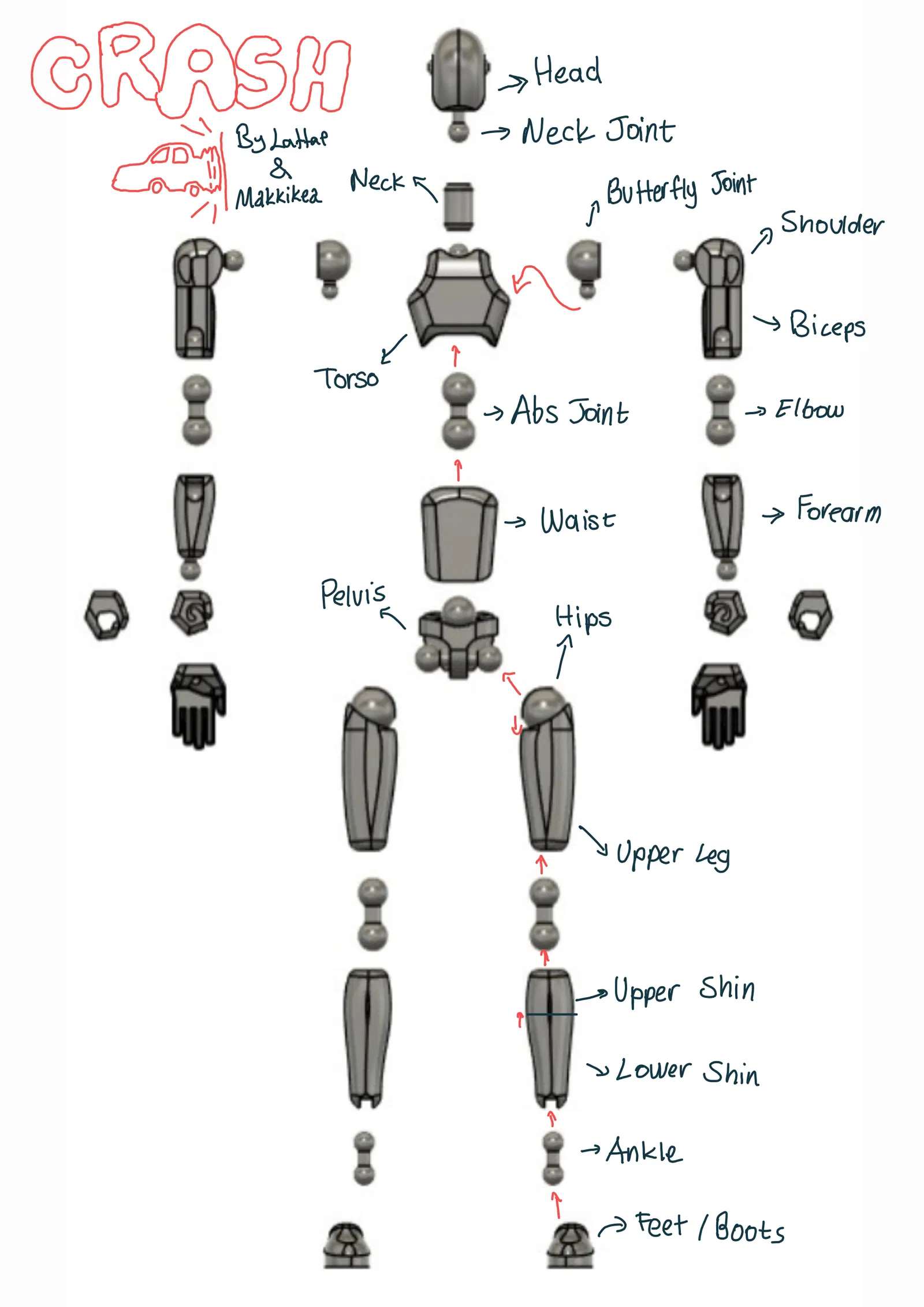 1- Crash là một mô hình action figure có các khớp cử động linh hoạt. 2- Bạn nên in bằng chất liệu TPU 98A hoặc 95A để mô hình đạt độ bền và độ cứng tốt nhất. 3- Mình ĐẶC BIỆT khuyến khích các bạn sấy khô sợi nhựa trước khi in. 4- Cho phép remix mẫu (mình rất hoan nghênh điều này).