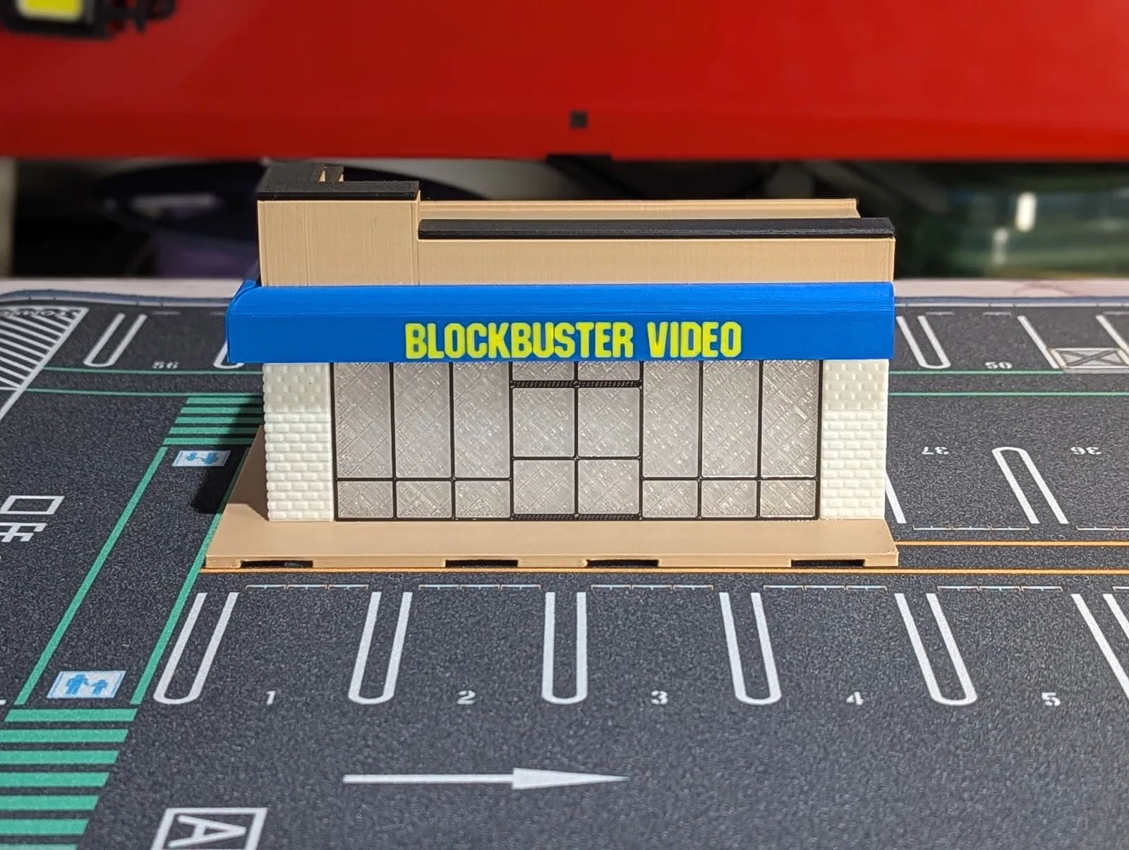 Các cửa hàng Blockbuster có mặt ở khắp mọi nơi (ít nhất là ở khu ngoại ô Chicago nơi mình sống), hầu hết đều có mái hiên màu xanh dương đặc trưng và logo màu vàng nổi bật. Cửa hàng thường nằm trong các khu trung tâm thương mại hoặc các tòa nhà riêng biệt. Bên trong là các dãy kệ bày trí phim ảnh, chương trình truyền hình, trò chơi điện tử và đồ ăn vặt. Trong thiết kế lần này, cửa hàng Blockbuster sẽ là một phần của bộ sưu tập Strip Mall Series mà mình vừa tạo ra. Khu phố thương mại này sẽ gồm 5 tòa nhà, và Blockbuster đóng vai trò là một đầu của dãy phố với thiết kế cửa chính và cửa sổ lớn, tường gạch cùng phần mái hiên logo màu xanh quen thuộc.