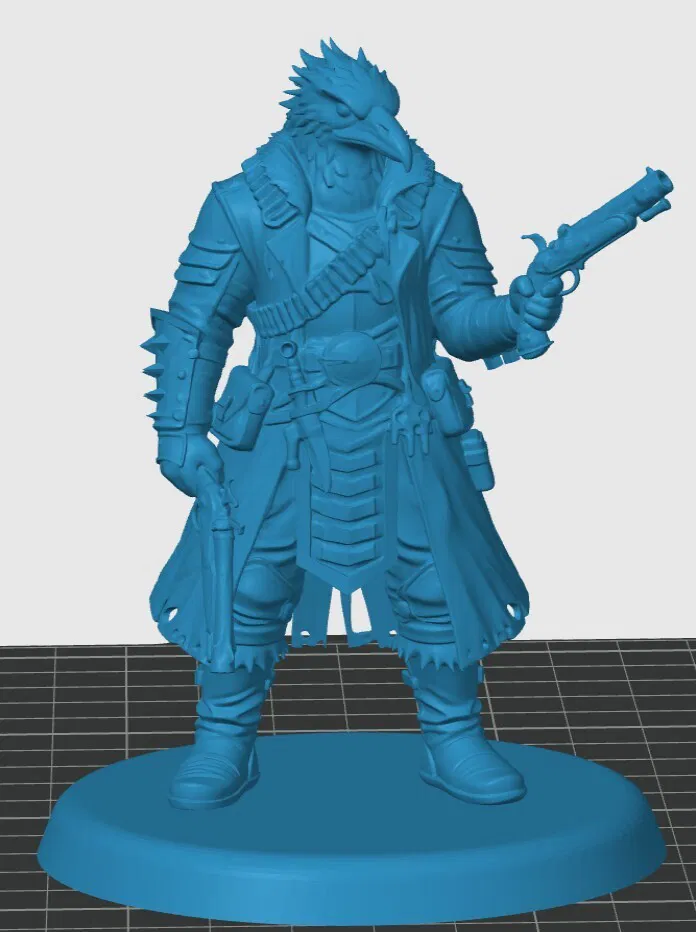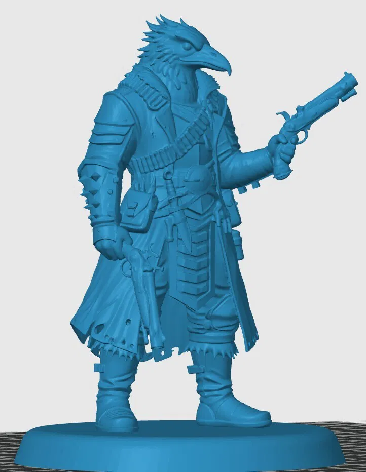 Đây là mẫu Kenku Gunslinger do mình tự thiết kế. Các bạn có thể cần chỉnh lại kích thước mô hình để phù hợp với nhu cầu chơi RPG của mình nhé. Do mô hình này có độ chi tiết cao nên sẽ có một số phần khá mảnh. Mình khuyến khích các bạn nên in bằng máy in resin. Nếu bạn chọn in bằng máy in sợi nhựa (filament), hãy dùng đầu phun (nozzle) loại nhỏ và giảm tốc độ in lại để đạt kết quả tốt nhất.