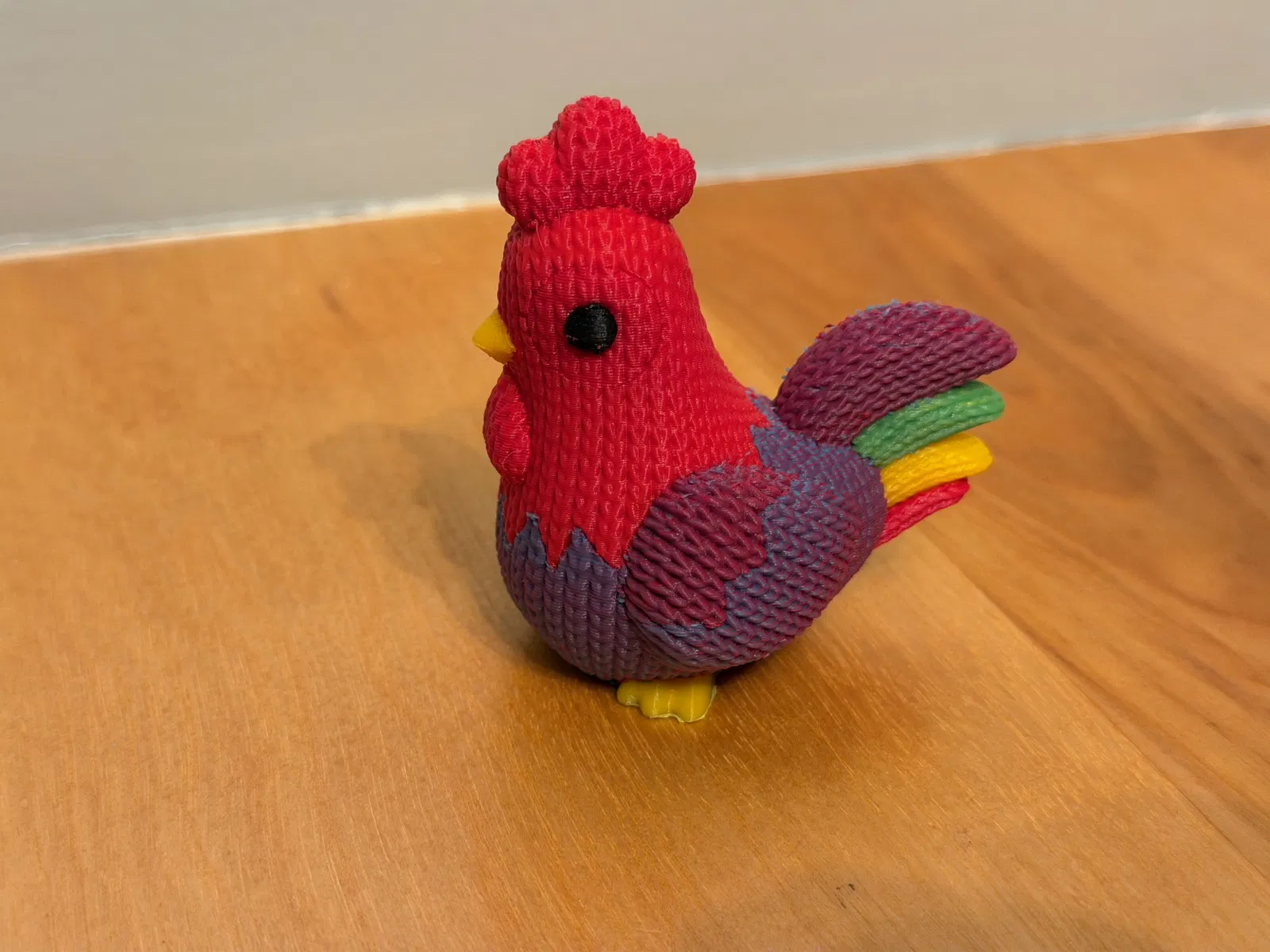 Tôi đã thử in một chú gà YOLO với các màu CMYK gần nhất tìm được tại Microcenter. Kết quả là màu cam ra đỏ, màu đỏ thì đậm hơn chút, màu xanh dương ra tím, còn màu tím lại ra tím hơi đỏ... nhưng về cơ bản, kết quả hoàn toàn ổn cho lần in thử đầu tiên.