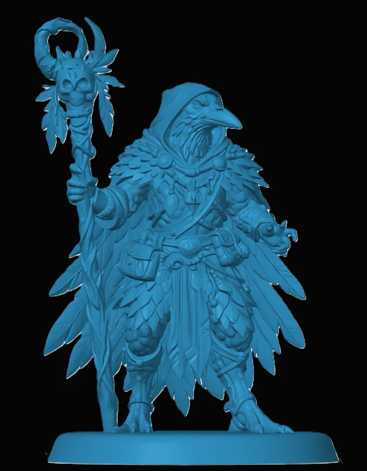 Đây là mẫu Kenku Druid do mình tự thiết kế. Bạn có thể cần điều chỉnh lại kích thước của mô hình này sao cho phù hợp với nhu cầu chơi RPG của mình. Do mô hình có nhiều chi tiết tinh xảo nên sẽ có một số phần khá mỏng. Mình khuyến khích các bạn nên in bằng máy in resin để có kết quả tốt nhất. Nếu bạn chọn in bằng nhựa filament (FDM), hãy dùng đầu phun (nozzle) loại nhỏ và giảm tốc độ in xuống nhé.