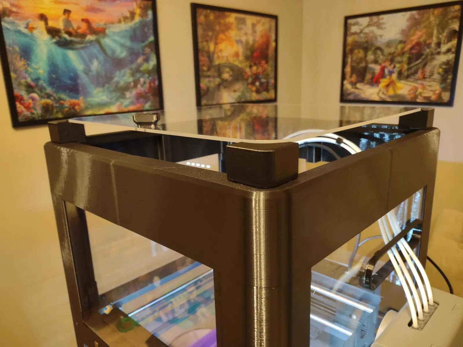 Đây là bản cải tiến từ mẫu của Dzung Vu, vừa dùng để giữ tấm mica trên cùng, vừa tận dụng làm lỗ thông gió khi in các loại nhựa như PLA. Thiết kế gồm 2 phần riêng biệt cho các vị trí khác nhau trên máy Flashforge AD5X, rất dễ lắp đặt.