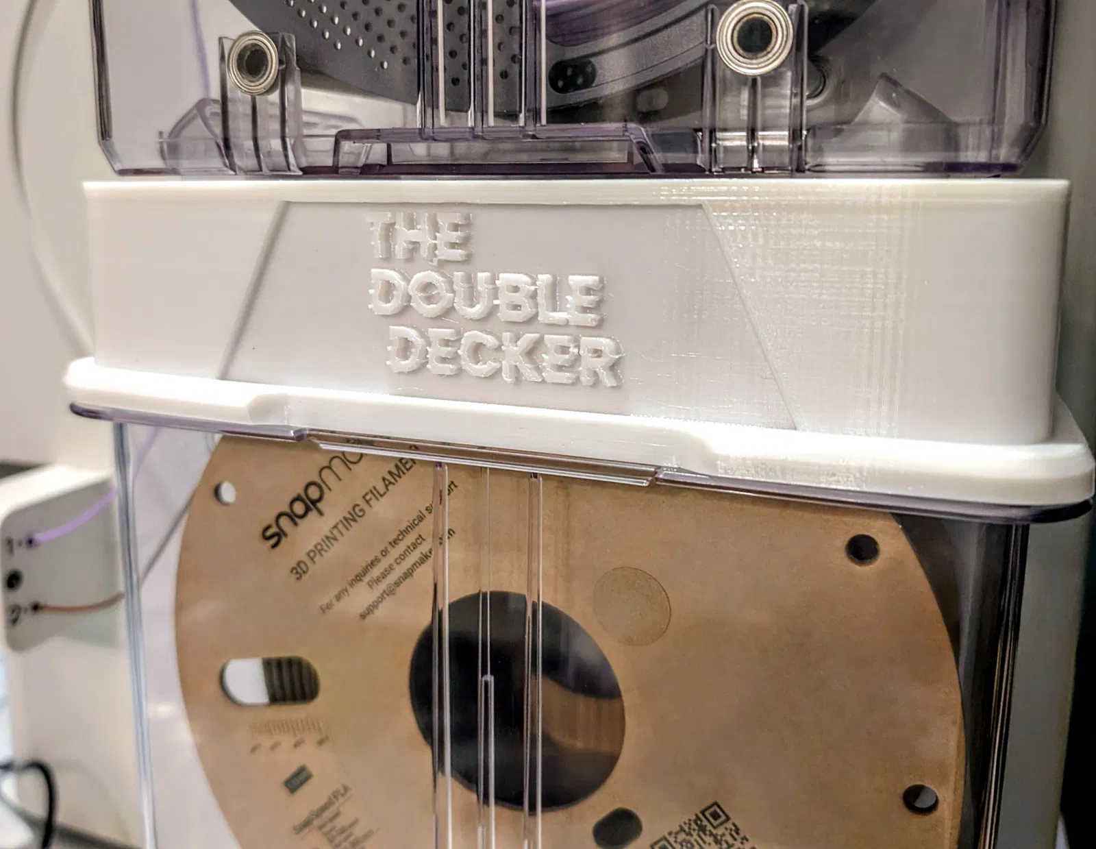Đúng như tên gọi, mình muốn tạo ra một giải pháp xếp chồng cho PolyDryer để phần nắp có thể dẫn nhiệt lên hộp thứ 2. Cái nắp này thay thế cho nắp kín tiêu chuẩn, thêm 2 cổng để khớp với các lỗ hở ở đáy hộp sấy, giúp nhiệt truyền thẳng lên hộp bên trên. Nhờ vậy, mình đặt 1 đế sấy ở mỗi bên của máy U1, và có thể sấy liên tục tới 4 hộp sợi filament cùng một lúc.