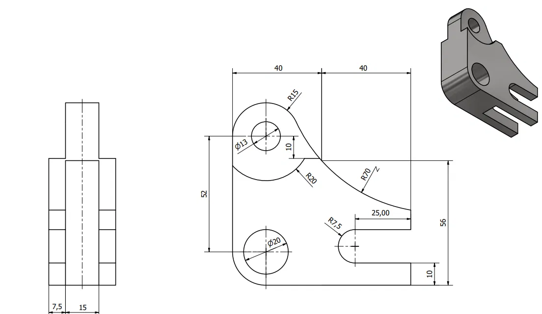 Sản phẩm này được thiết kế như một công cụ hỗ trợ giáo dục hoặc bài tập thực hành dành cho các kỹ sư, sinh viên ngành kỹ thuật hoặc những người đam mê thiết kế CAD muốn rèn luyện tư duy không gian. Nhìn vào bản vẽ kỹ thuật đi kèm, bạn sẽ thấy rõ sự phân bổ hợp lý của các khối hình, giúp người dùng dễ dàng hình dung quy trình gia công hoặc in 3D. Việc nắm bắt được các thông số kỹ thuật như khoảng cách tâm lỗ và độ dày 15mm là chìa khóa quan trọng để hiện thực hóa mô hình này một cách hoàn hảo nhất trong thực tế.