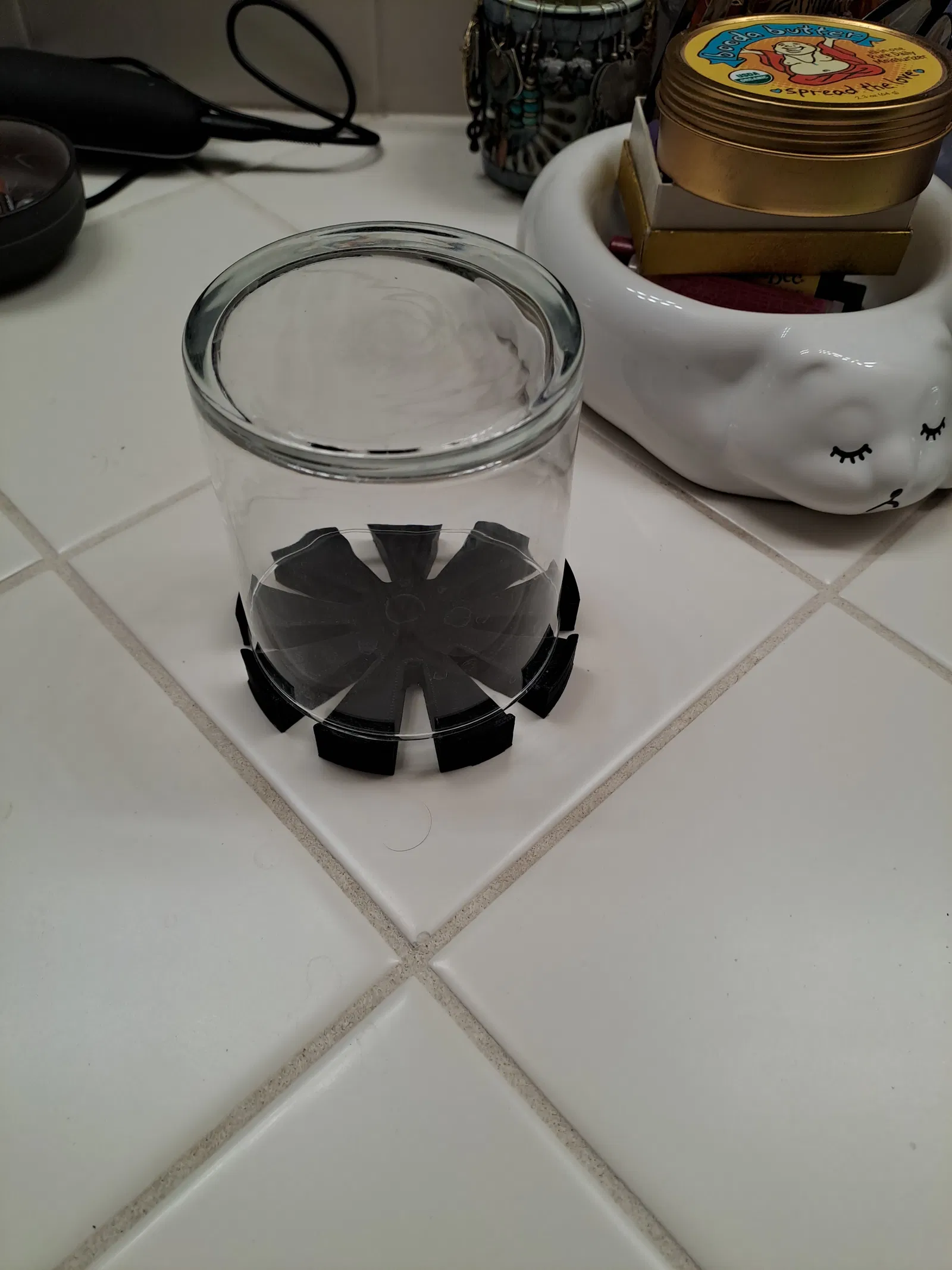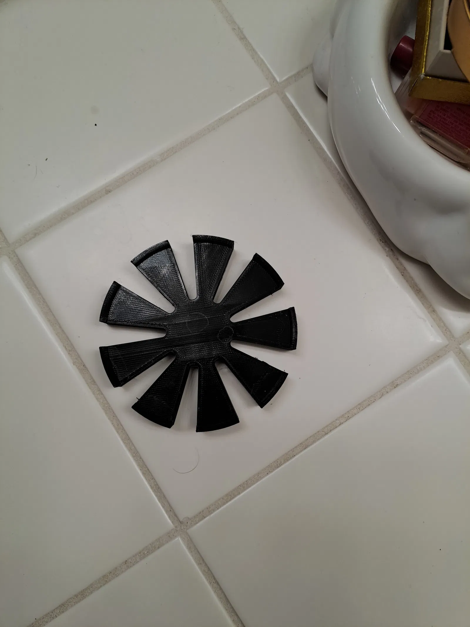 Mình thiết kế cái này bằng F360, sau đó dùng Cura để tạo brim và in trên máy SW2 với nhựa Kodak PLA màu đen. Các bạn cứ linh hoạt điều chỉnh thông số cho phù hợp với máy in của mình nhé. Đường kính ly là 3-1/4 inch, mình đã vẽ phần đế này to hơn một chút để tạo độ hở khoảng 1/8 inch, nên các loại ly lớn hơn cũng có thể vừa. Ban đầu mình có phân vân về việc bo tròn các cạnh, nhưng cuối cùng thấy để mặt phẳng vậy là ổn rồi. Nếu muốn, các bạn có thể import file vào phần mềm rồi tự thêm fillet nhé.