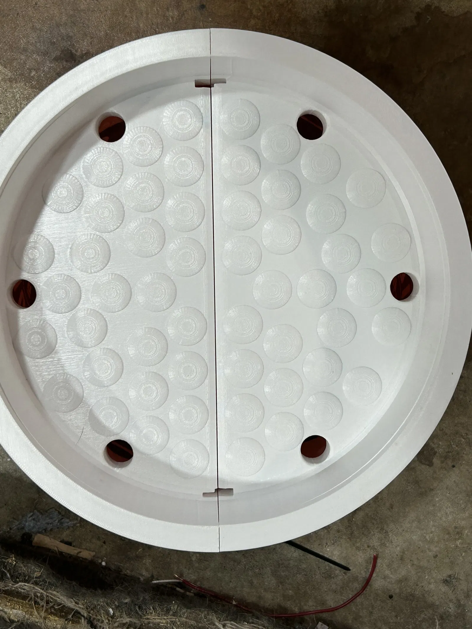 Đây là phiên bản V2/3 của dụng cụ vệ sinh pad (pad cleaner) mà mình từng đăng trước đây. Mình không thích cách các loại hợp chất/xi đánh bóng bị tích tụ lại trên bề mặt dụng cụ cũ. Thiết kế mới này được in làm 2 phần thay vì 4 - cần bàn in tối thiểu 300x300 để in. Bề mặt có các bán cầu lớn hơn thay vì nhiều lỗ nhỏ. Phần thân chính được làm nổi lên cùng với một rãnh nhỏ và 3 lỗ 0.75" giúp thoát nước hiệu quả hơn. Có 2 file bao gồm: bản gốc V3 và bản cập nhật với 2 phần cắt ở giữa để tăng khả năng thoát nước. Phiên bản đầu tiên yêu cầu 4 ốc cấy nhiệt (heat set inserts) 5mm và một giá đỡ để cố định hai mảnh. Sau đó dùng 1-2 kẹp nhỏ với ốc cấy nhiệt 3mm để kẹp dụng cụ vào xô. Phiên bản thứ hai dùng ốc vặn 5mm thay vì ốc cấy nhiệt, kèm giá đỡ. Hình ảnh là bản V2. Bản V3.2 đang in vào ngày 15/03/26, mình sẽ cập nhật ảnh sau khi lắp ráp xong. Độ sâu được giảm xuống 1.5" so với 2" để tạo thêm không gian giữa đáy máy đánh bóng và vành dụng cụ. Mình đã thử nghiệm V2 với máy đánh bóng Liquid Elements 15mm và không gặp vấn đề gì. Nên in bằng PETG, 3 tường, infill 20-25%. In trên Creality K2 mất khoảng 10.5 tiếng. Bạn cần chà nhám phần đỉnh của các bán cầu. Mình đã dùng giấy nhám 320 trên máy chà nhám rung để loại bỏ các cạnh sắc rồi rửa sạch nhựa thừa. Nếu bạn chọn tính năng "Ironing", có thể không cần chà nhám nhưng thời gian in sẽ tăng gấp đôi. Cần có supports. Bạn có thể dùng tự động hoặc vẽ tay ở những chỗ cần thiết như phần dưới có cầu nối (bridges) và vành dụng cụ. Các kẹp có thể in bằng PLA, PETG hoặc ABS tùy ý bạn. Thiết kế vừa vặn với xô 3.5 gallon của Chemical Guys. Hãy scale lại nếu cần cho vừa với xô của bạn. Được tối ưu để in với 1kg nhựa. Mình rất trân trọng mọi phản hồi từ các bạn! Vui lòng chụp ảnh và đăng tải thành quả lên nhé, mình cảm ơn rất nhiều.