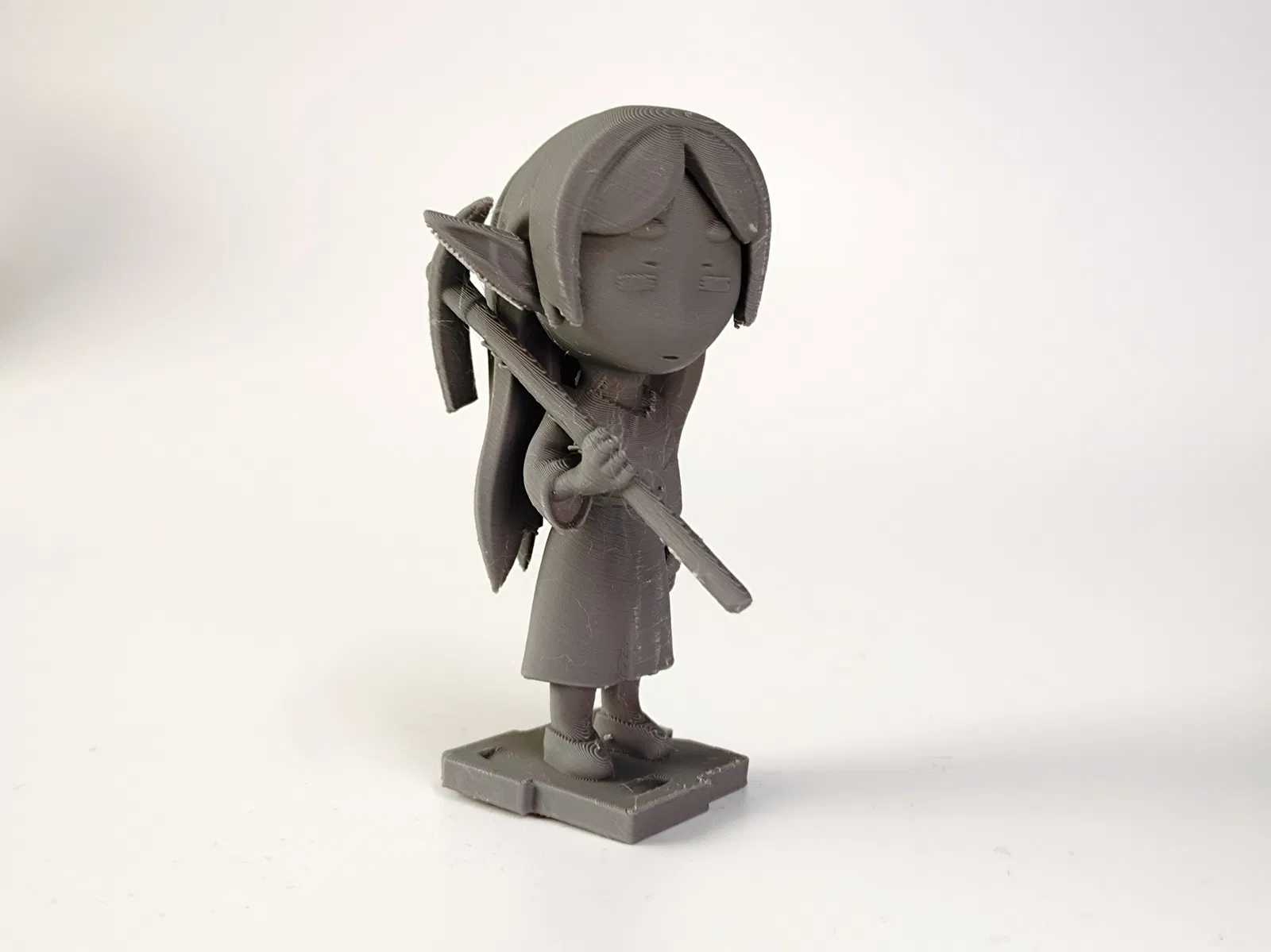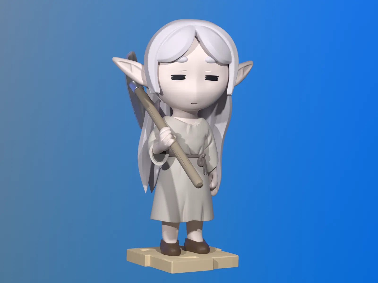 Mô hình nhân vật Frieren trong bộ trang phục thợ mỏ dựa trên tập phim anime gần đây. Thiết kế chibi 3 đầu cực kỳ đáng yêu, phù hợp cho các bạn đam mê in 3D mô hình anime.