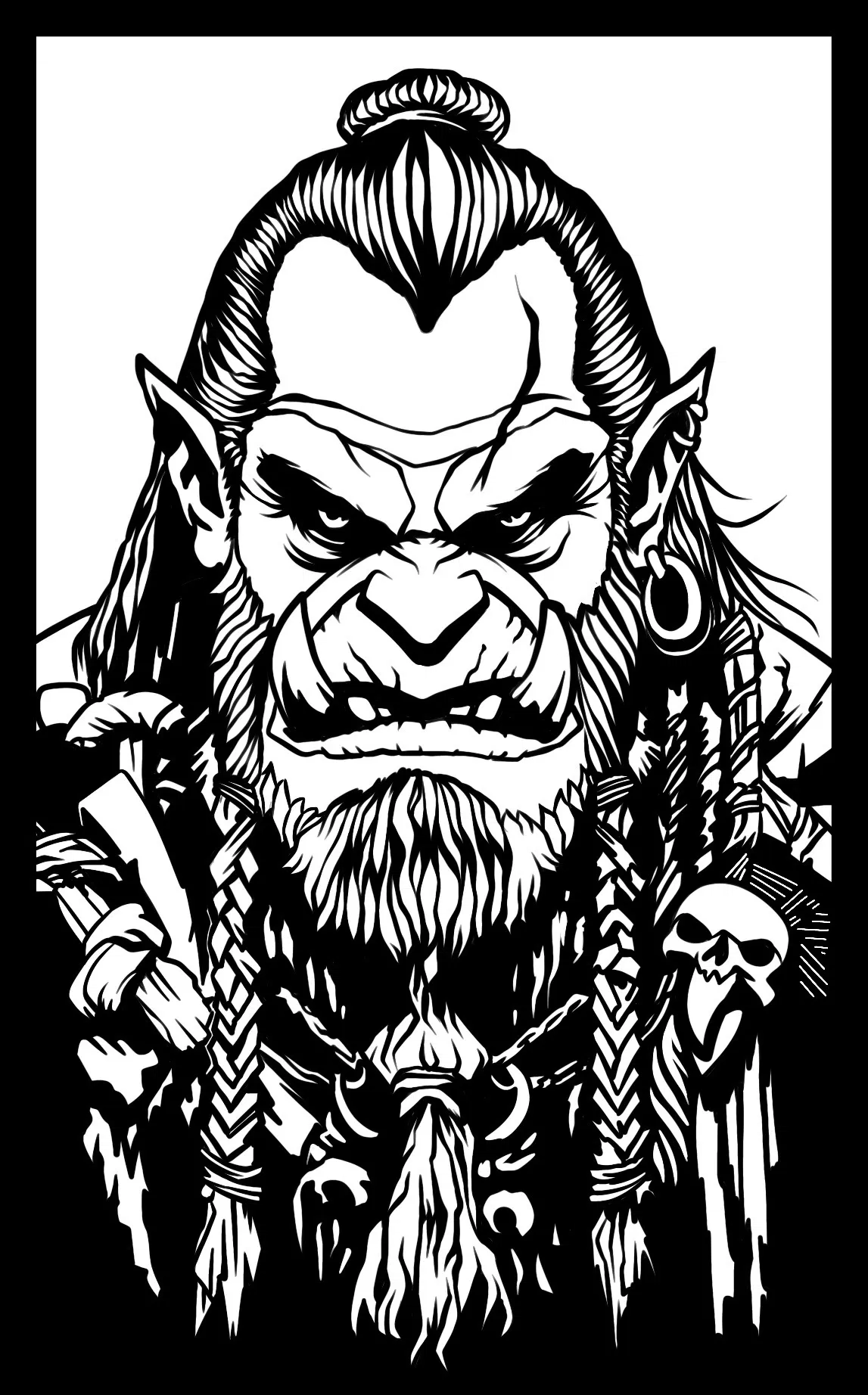 • Kích thước gợi ý: Tùy vào diện tích tường, anh em có thể scale lên hoặc xuống, nhưng tốt nhất nên in khổ lớn để làm nổi bật thần thái của chiến binh Orc.