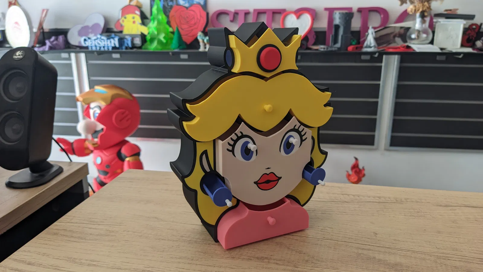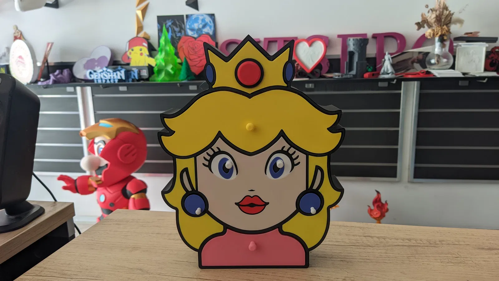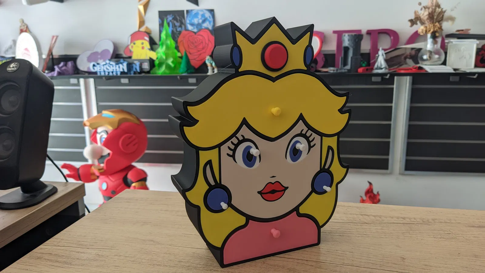 Làm mới không gian của bạn với chiếc hộp trang sức lấy cảm hứng từ Công chúa Peach, vị quân chủ đáng yêu từ Vương quốc Nấm! Dù bạn là một fan cứng của Mario hay chỉ đơn giản là yêu thích những món đồ trang trí độc đáo theo phong cách nhân vật, thiết kế vừa tiện dụng vừa tinh nghịch này chắc chắn sẽ trở thành tâm điểm trên bàn trang điểm, kệ sách hay phòng chơi game của bạn.