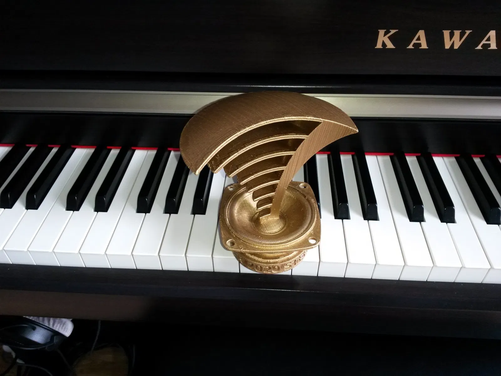 Pokal cho kỹ thuật viên âm thanh của chúng tôi trong năm. Được chuẩn bị với các lỗ khoan cho LED. Bao gồm hai phần. Phần đỉnh sóng âm tôi đã thay đổi để có thể in dễ dàng khi nằm. Nhưng sau đó cần phải cắt bỏ một vài lớp sau. Các bạn sẽ tìm ra khi đặt trong phần mềm in 3D của mình, mặt phẳng nào tôi đang nói đến. Cũng có một vài cấu trúc hỗ trợ đã có sẵn trong loa.