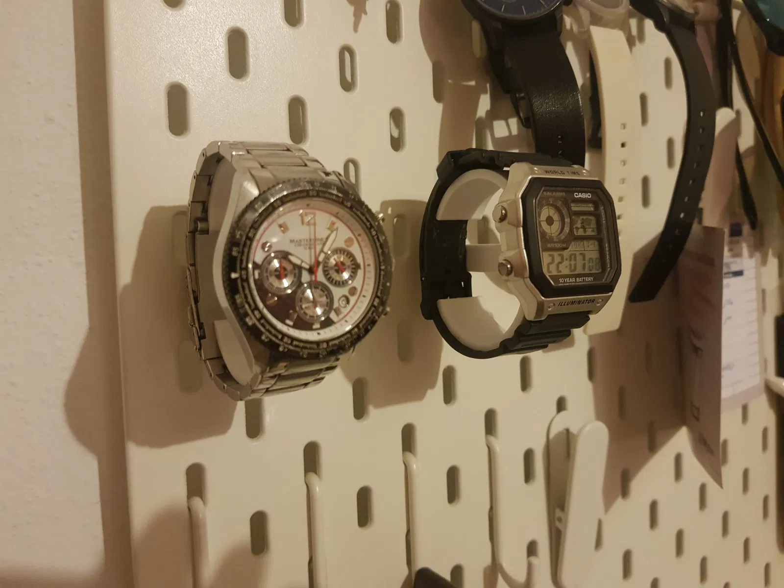 Giá đỡ đồng hồ cho tường Skadis modular của Ikea.