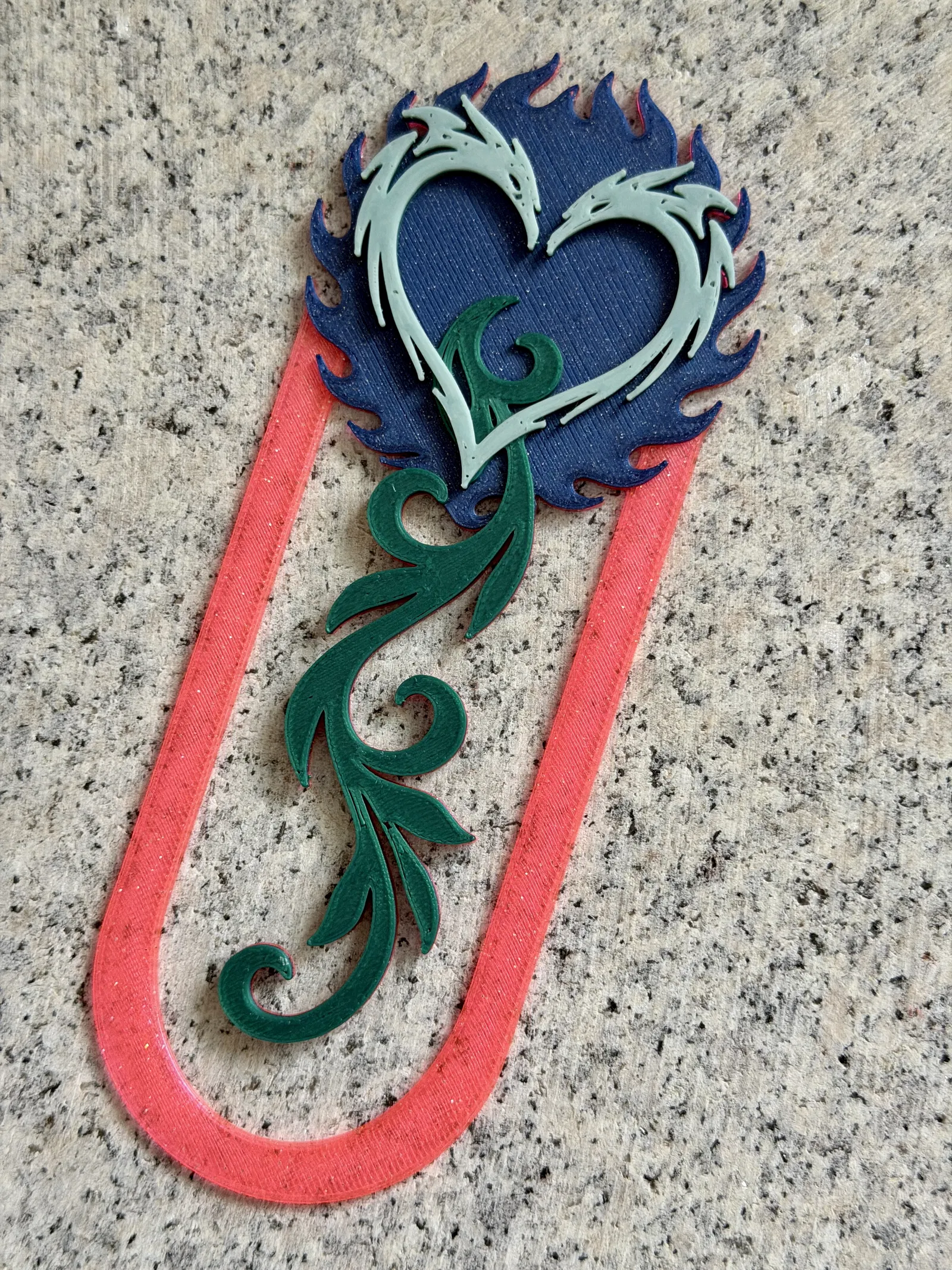 Một mẫu bookmark trang trí độc đáo với hình ảnh hai đầu rồng uốn lượn tạo thành hình trái tim. Mẫu này không cần đến AMS, bạn có thể dễ dàng đổi màu bằng cách tạm dừng in.