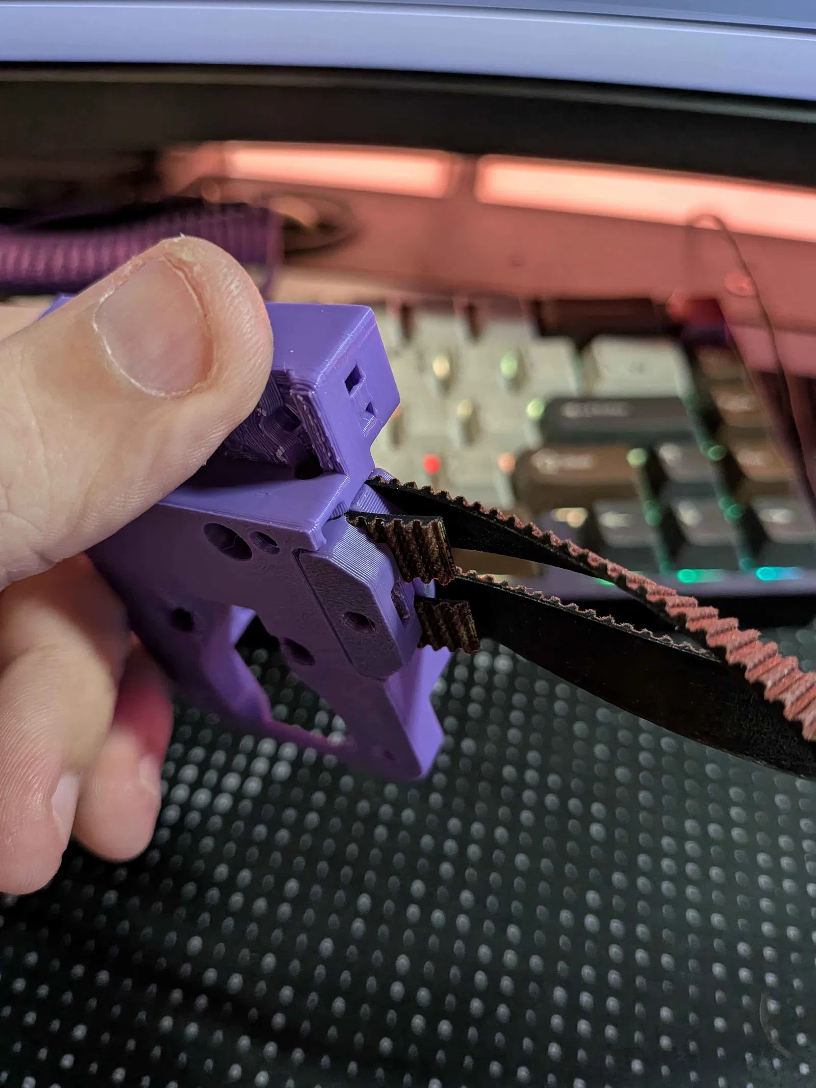 Do gặp phải vấn đề với các lựa chọn hiện có như nêm uốn hay kẹp bị cong, lại còn cần phải in bằng công nghệ SLM mới chịu nổi lực căng cao khi chạy Monolith... nên mình quyết định tự thiết kế bộ kẹp riêng, in hoàn toàn bằng nhựa nhưng vẫn đảm bảo chịu được lực căng lớn!