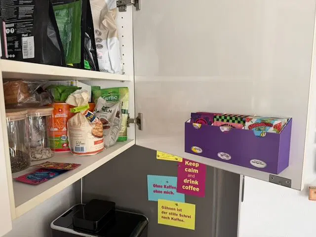 Đây là một cái hộp nhỏ để dán bên trong tủ bếp, dùng để đựng ba hộp mẫu từ HOLY, một công ty chuyên làm bột Ice Tea, Energy và Hydration mà mình hay dùng để pha với nước.