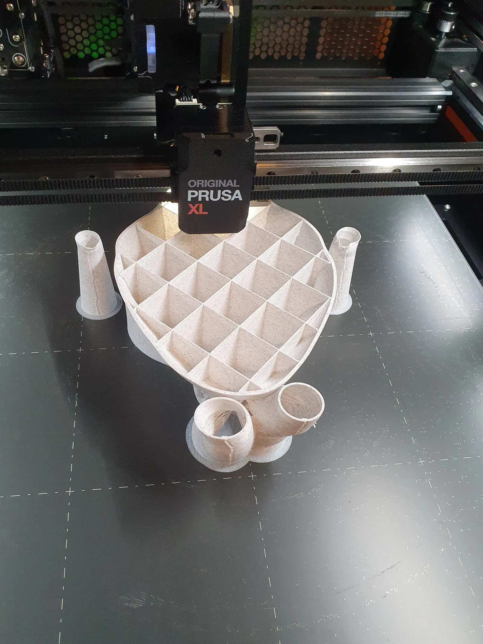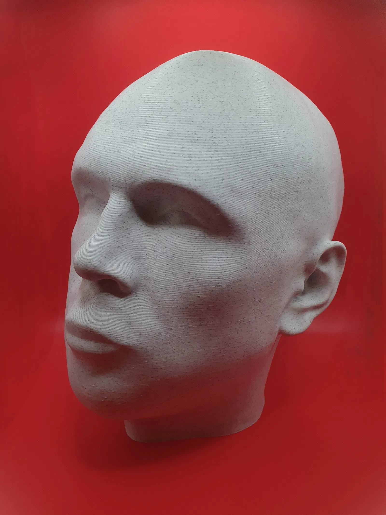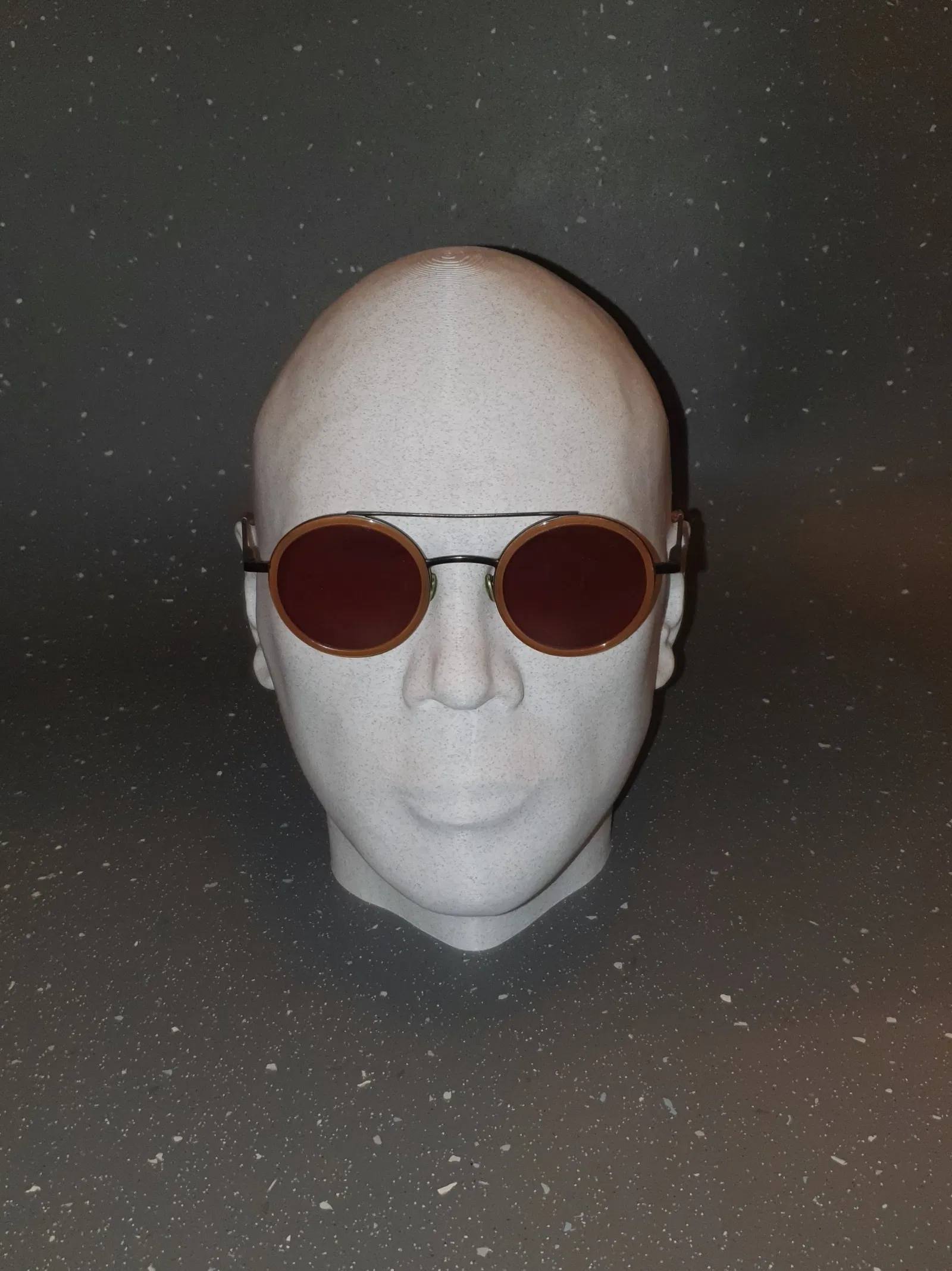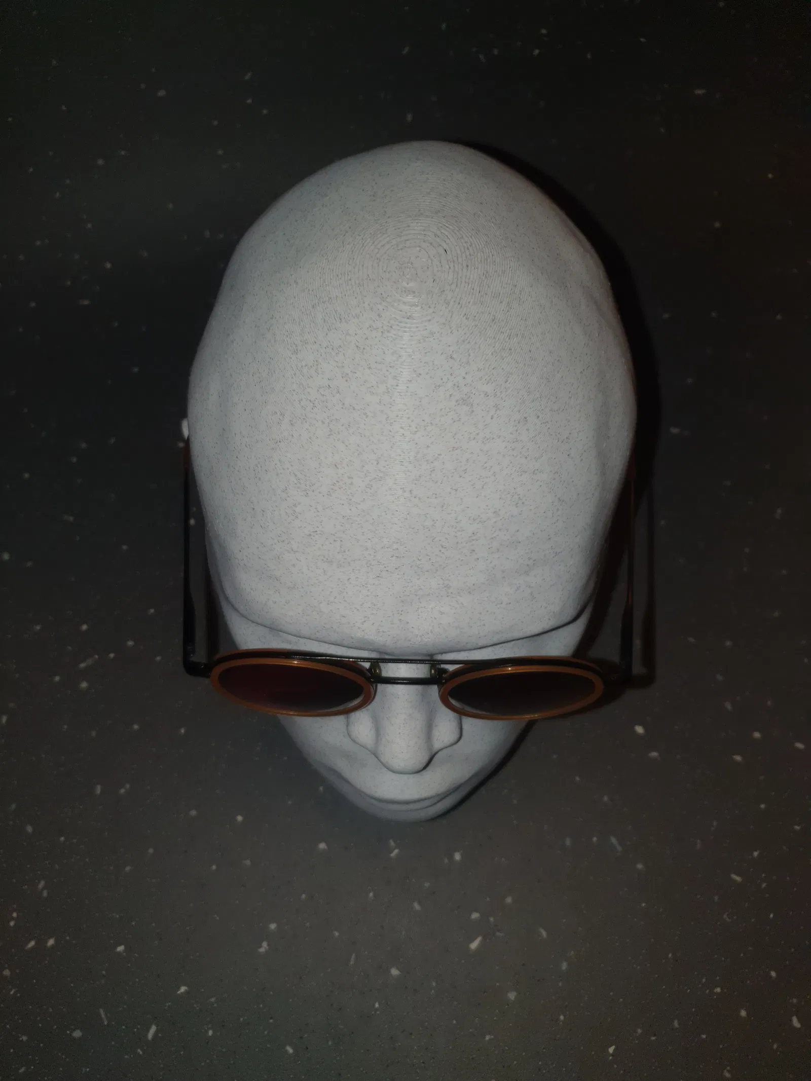 Mình còn trống một ít chỗ trên kệ và cũng đang cần một chỗ để tai nghe với kính mát. Mấy cái khay đựng đồ bình thường thì chán quá, còn mấy cái đầu manocanh đối xứng hoàn hảo nhìn lại cứ thấy hơi ghê ghê sao ấy. Thế là mình nảy ra ý tưởng dùng bản scan đầu của chính mình để làm giá đỡ: Mục tiêu là tạo ra một cái giá vừa tiện dụng, vừa có cá tính riêng khi đặt trên kệ. Mình chọn loại nhựa (filament) này chủ yếu là vì ngoại hình — bề mặt trông như đá làm cho nó giống một bức tượng nhỏ hơn là một món đồ in 3D bình thường. Bản in này không cần lớp đáy (bottom layers) vì nó đã nằm phẳng trên kệ rồi, giúp tiết kiệm thời gian và nhựa hơn. Một bản in đơn giản, mục đích đơn giản — một cách hơi "người" hơn một chút để cất giữ tai nghe và kính mát của bạn. Mình mới thêm một phiên bản low-poly, đây chỉ mới là file thôi, mình chưa in thử nữa...