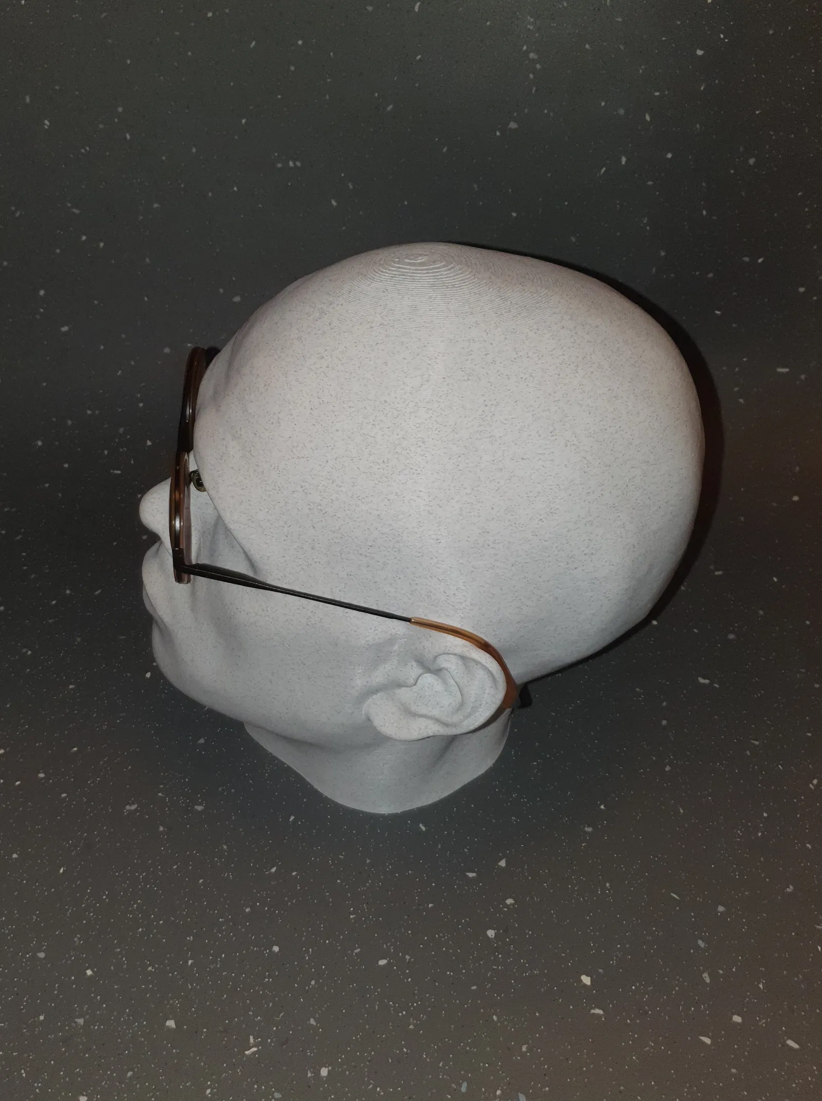 Tận dụng bản scan đầu của chính mình để làm giá đỡ tai nghe và kính mát. Sử dụng nhựa Marble-PLA tạo hiệu ứng như tượng đá, vừa tiện dụng vừa có tính thẩm mỹ cao cho góc làm việc của bạn. Bản in tối ưu không cần lớp đáy.