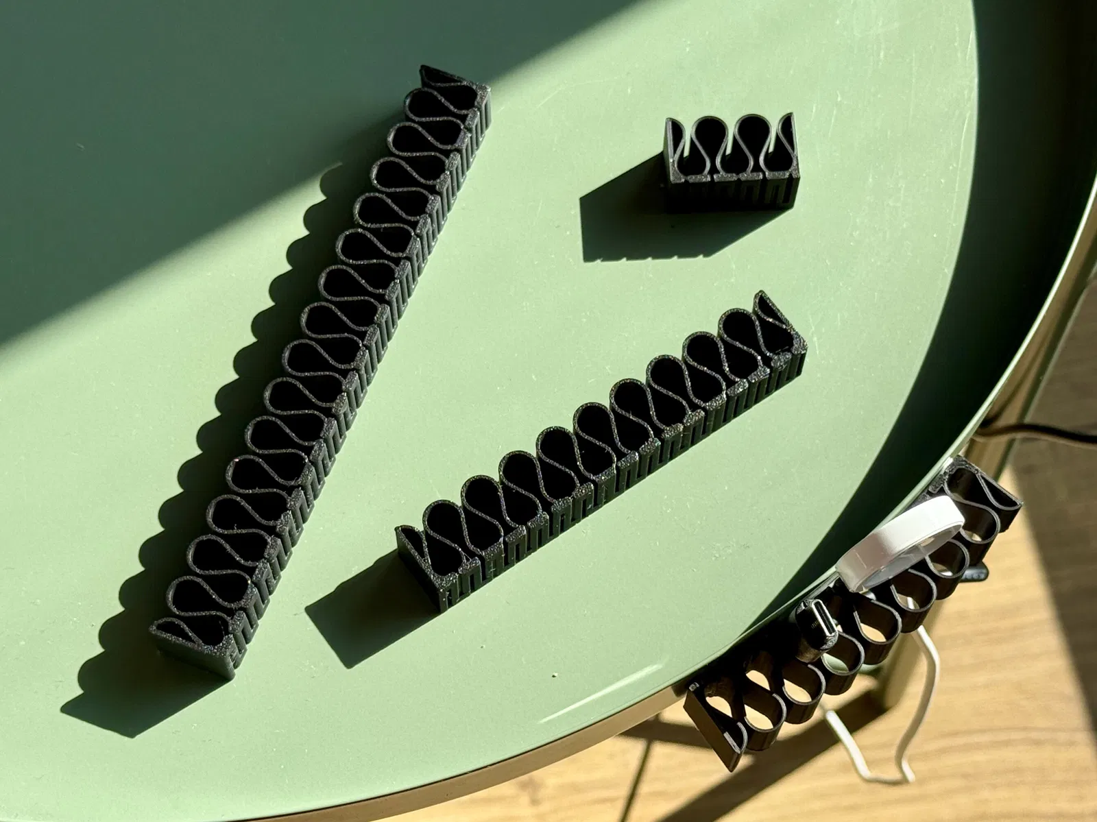 Giải pháp quản lý dây cáp thông minh với thiết kế uốn dẻo, ôm sát mọi bề mặt cong như cạnh bàn hay mặt sau TV. Hỗ trợ từ 3 đến 15 khe cắm, in nhanh không cần support, cực kỳ gọn gàng cho không gian làm việc của bạn.