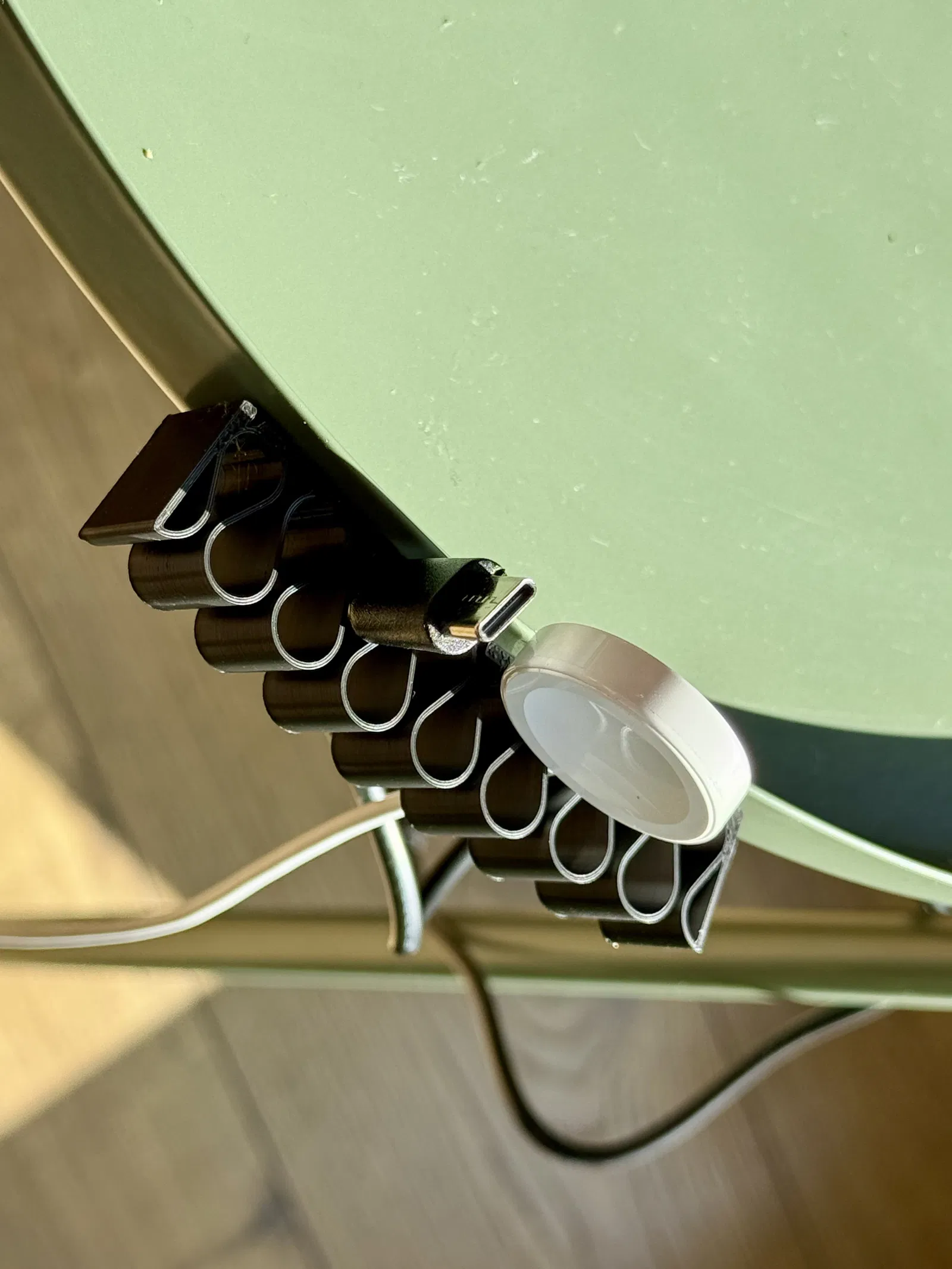 Tôi thiết kế mẫu này để tạo ra một phụ kiện sắp xếp dây cáp đơn giản nhưng thích ứng tốt với thực tế. Nhiều loại kẹp dây chỉ dùng được trên mặt phẳng, còn mẫu này uốn cong để nằm vừa vặn đúng nơi bạn cần mà vẫn giữ cho dây cáp gọn gàng, dễ lấy.