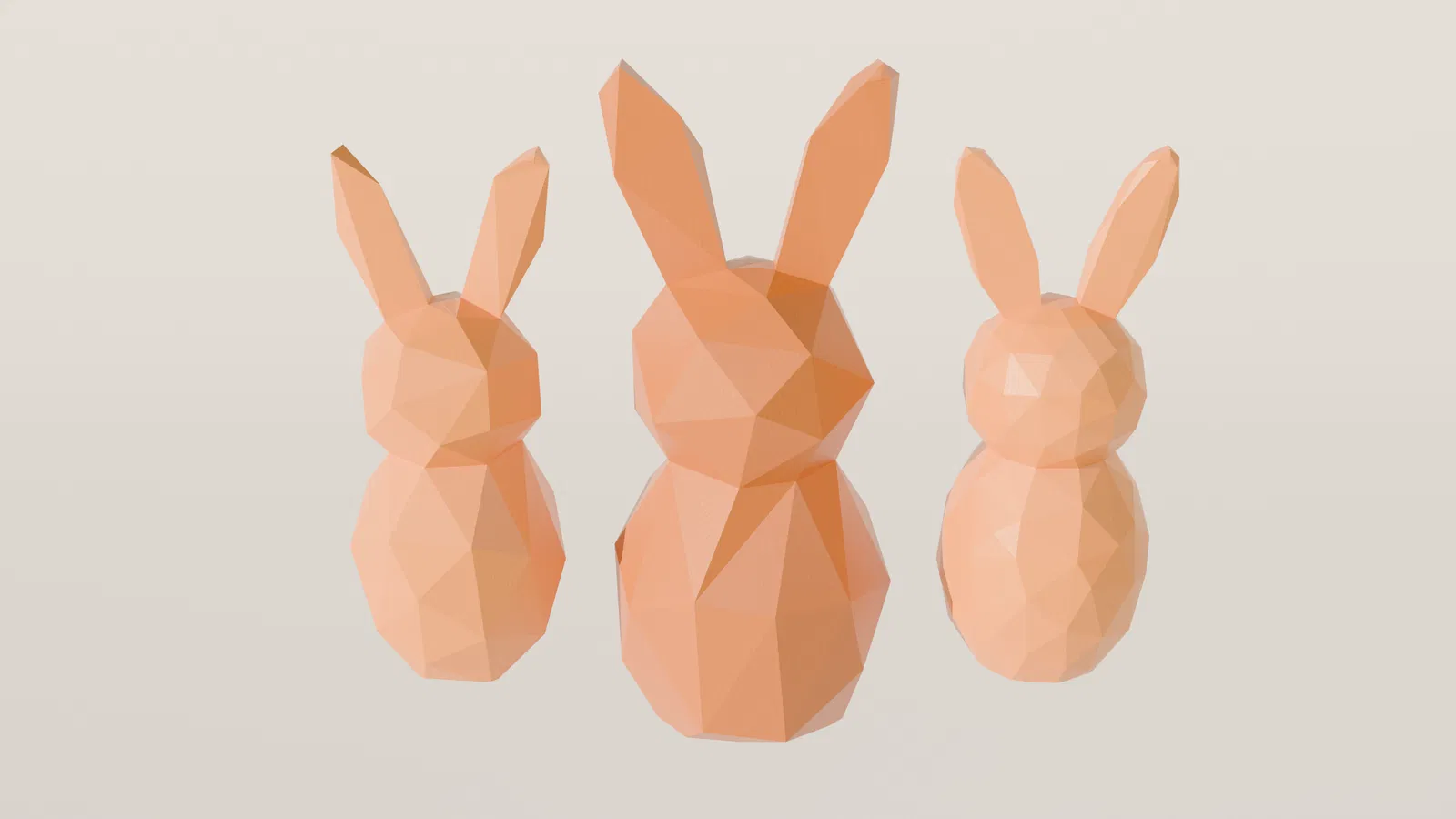 Trang trí không gian lễ Phục sinh thêm độc đáo với bộ 3 chú thỏ thiết kế theo phong cách Low Poly tối giản. Mỗi chú thỏ mang một cấp độ đa giác riêng, cho phép bạn linh hoạt in ấn kích thước từ lớn đến nhỏ tùy thích.
