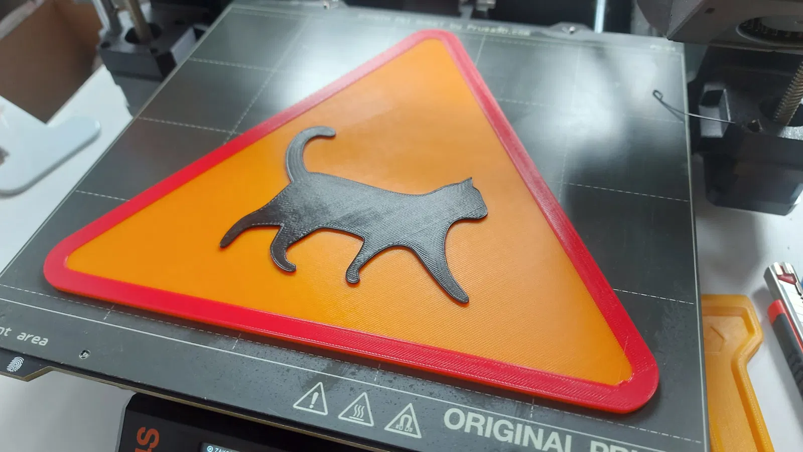 Một chiếc biển báo giao thông "Cẩn thận Mèo!" cực kỳ vui nhộn. Phiên bản này được thiết kế để in 3 màu mà không cần dùng đến hệ thống MMU hay AMS. Nhìn rất đẹp khi để trên bàn hoặc treo tường đó nha!
