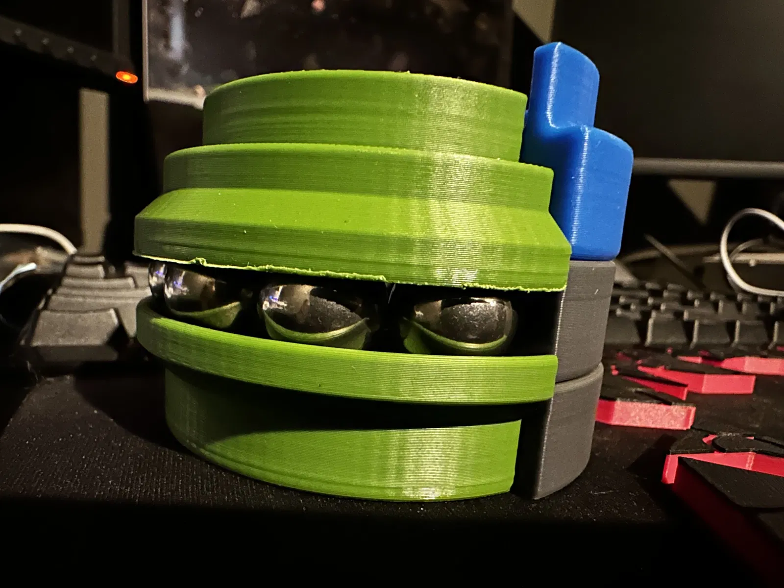 Tôi đã thiết kế các vòng này với rãnh 18mm để chứa các viên bi (ball bearings). Tôi đang sử dụng bi 16mm và có thể dễ dàng lắp 10 viên vào vòng. Điều thú vị là mỗi viên bi của tôi nặng 17g, chính xác bằng một nửa trọng lượng của một chiếc vòng 39mm thông thường. Việc thêm 10 viên bi tương đương với việc thêm 5 chiếc vòng đầy đủ.