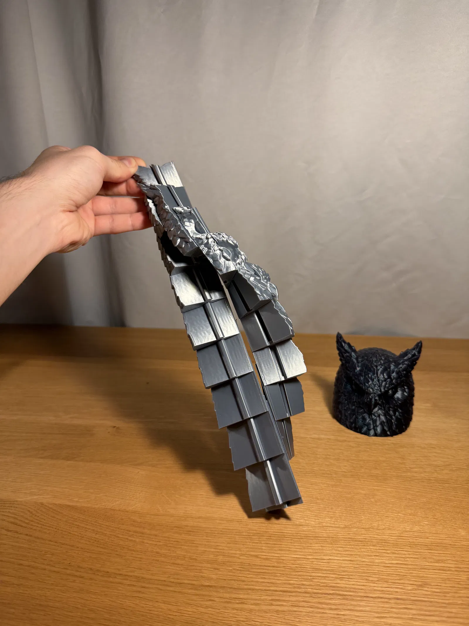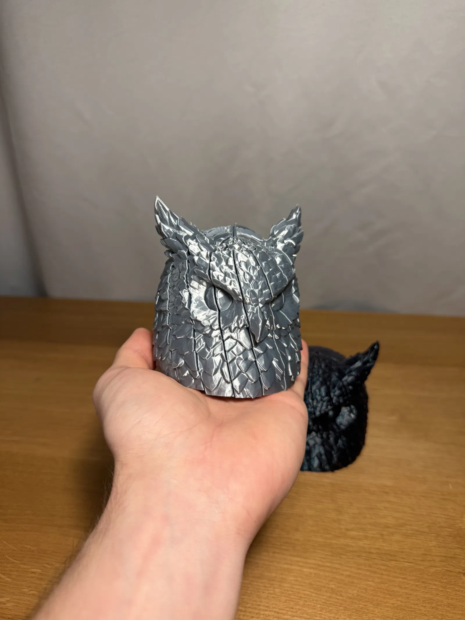 Thiết kế này kết hợp giữa một tác phẩm điêu khắc cú mèo trang trí và cơ chế fidget tương tác, biến nó thành một món đồ chơi giải trí thú vị vừa là vật phẩm trưng bày cực kỳ bắt mắt.