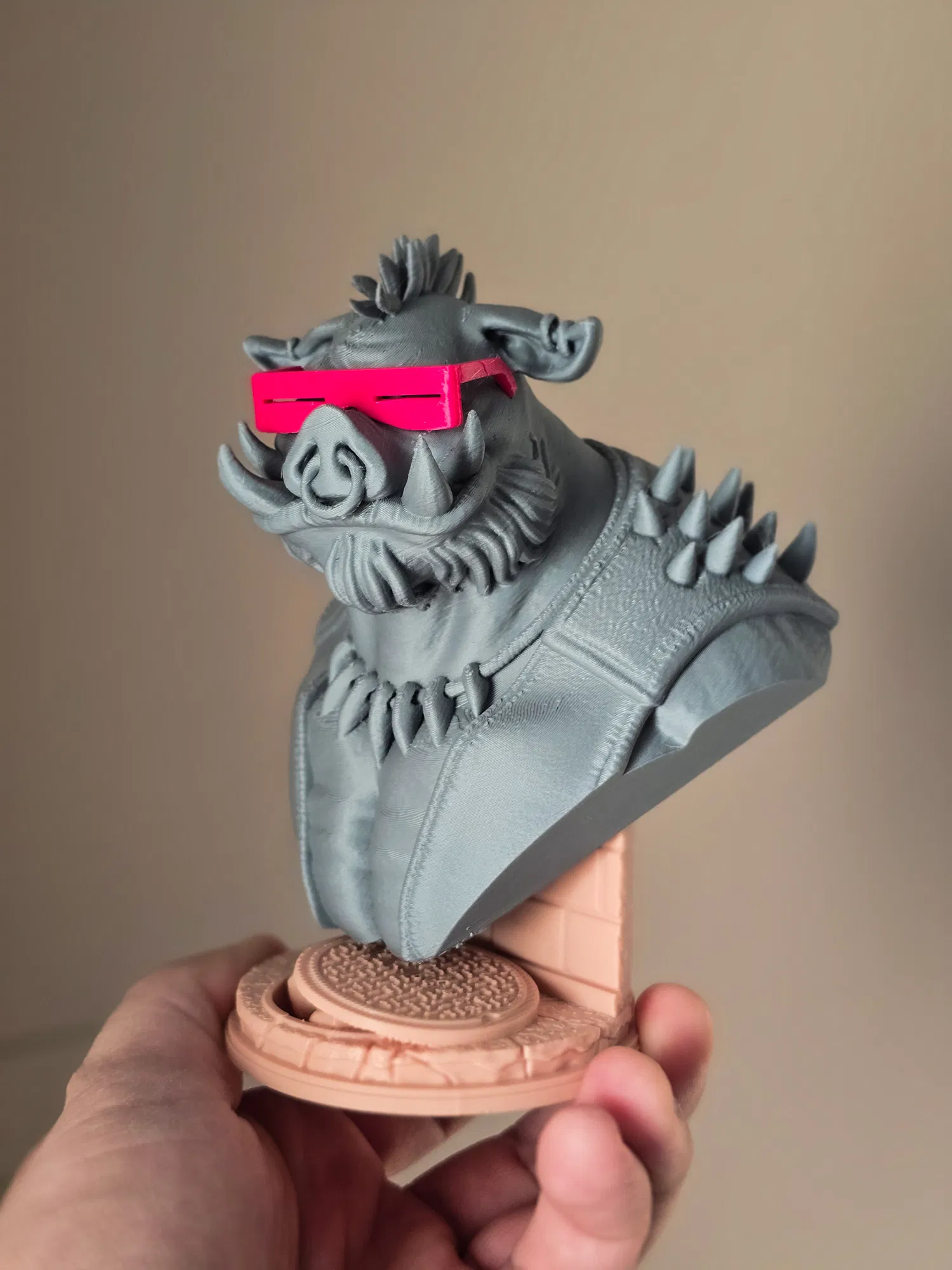 Khám phá ngay mô hình in 3D nhân vật Bebop đầy cá tính, một trong những phản diện nổi tiếng nhất từ vũ trụ Teenage Mutant Ninja Turtles. Sản phẩm không chỉ sở hữu thiết kế chi tiết với vẻ ngoài gai góc, ấn tượng mà còn đi kèm với 2 tùy chọn chân đế linh hoạt, giúp bạn dễ dàng trưng bày tại bất cứ đâu trong không gian sống hoặc làm việc của mình. Đặc biệt, chi tiết chiếc kính mát đi kèm càng làm tăng thêm nét độc đáo và hiện đại cho mô hình. Đây là món đồ chơi trang trí không thể thiếu cho các fan hâm mộ dòng mô hình nghệ thuật và những người đam mê in 3D muốn thử thách khả năng in ấn chi tiết sắc nét.