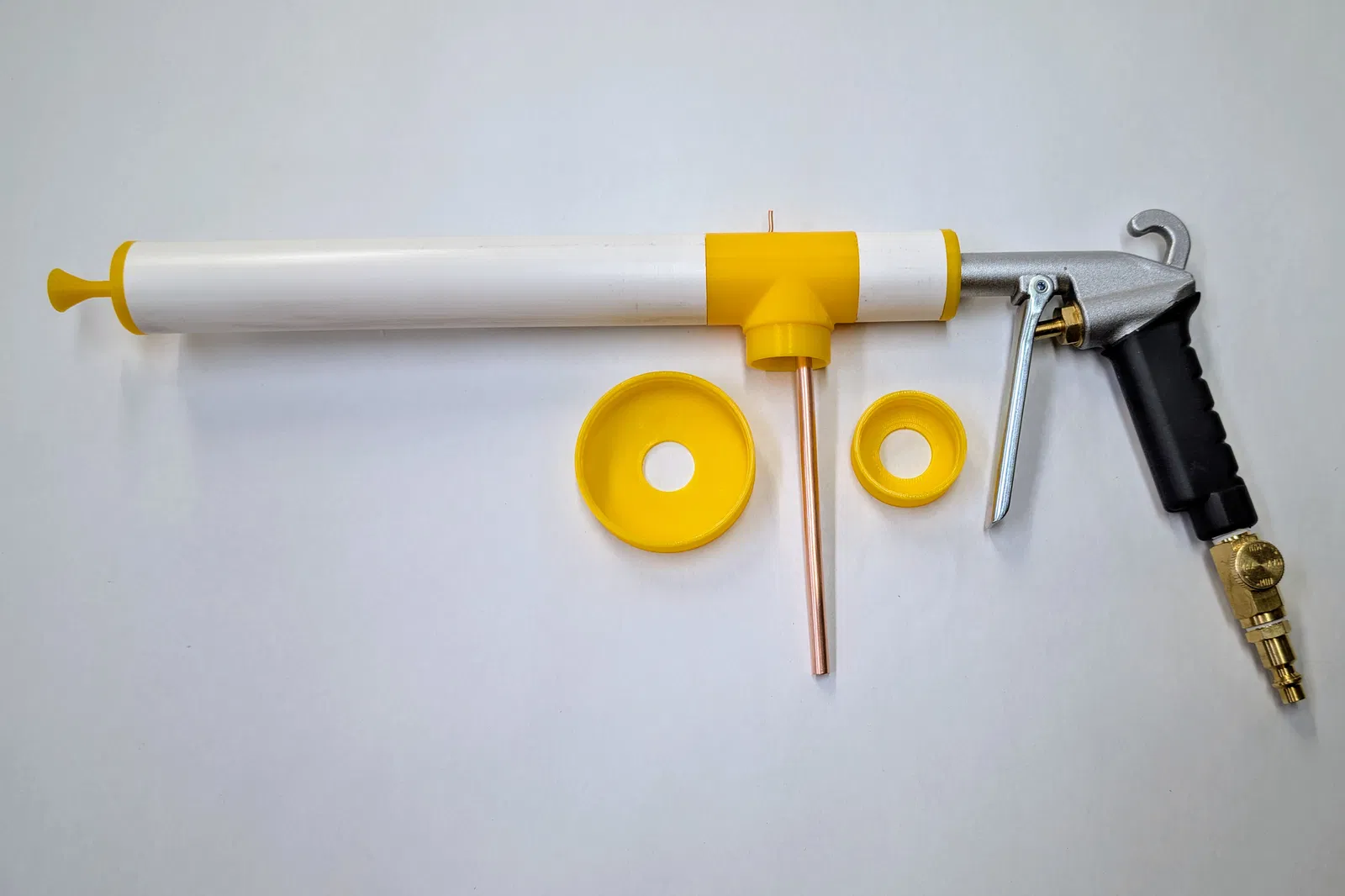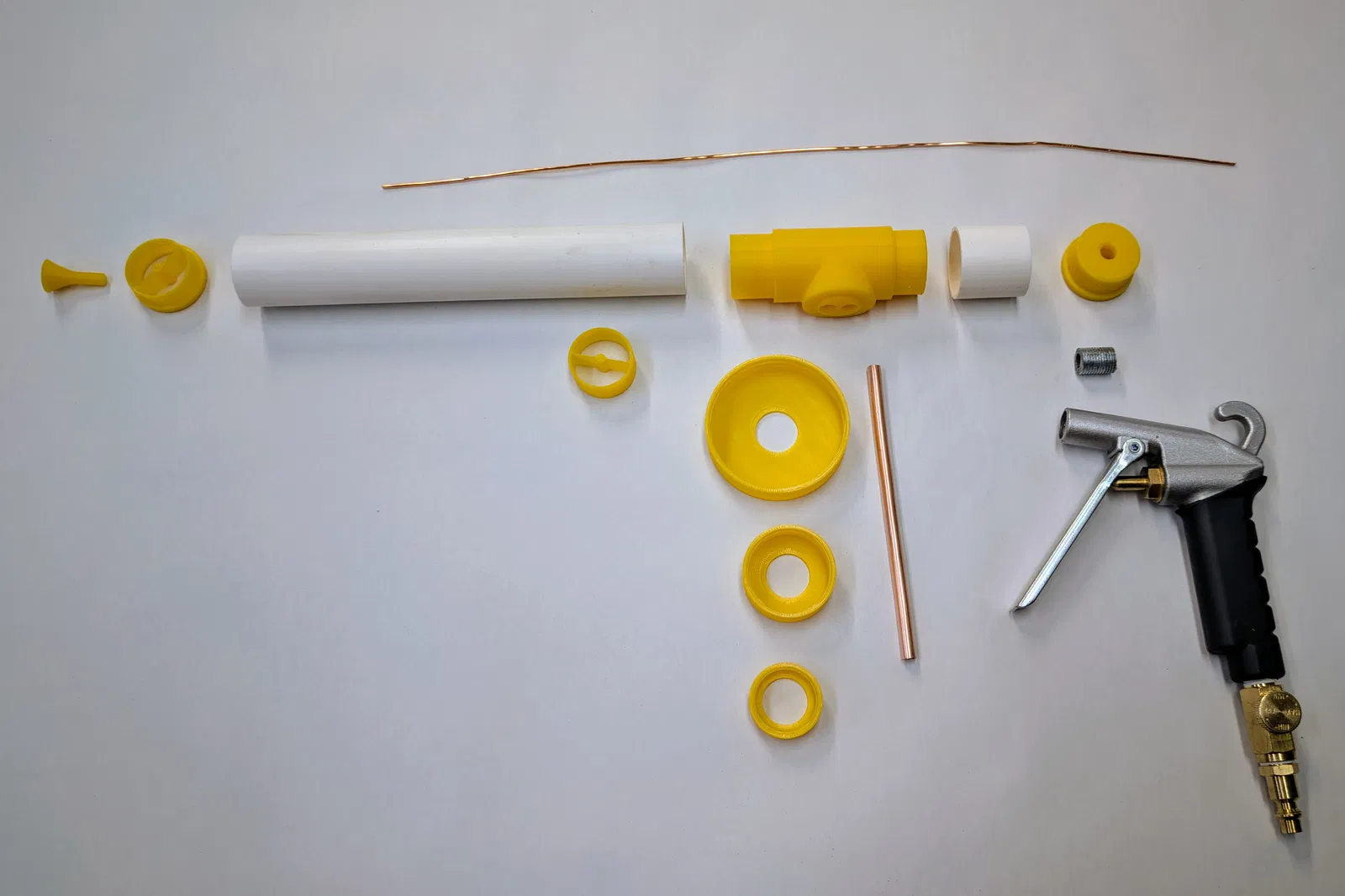 Các bộ phận in 3D cho súng phun được thiết kế để vừa với ống PVC 1" SDR-21 thông dụng tại các cửa hàng vật liệu ở Mỹ. Đường kính trong của ống này gần như chính xác là 30mm.