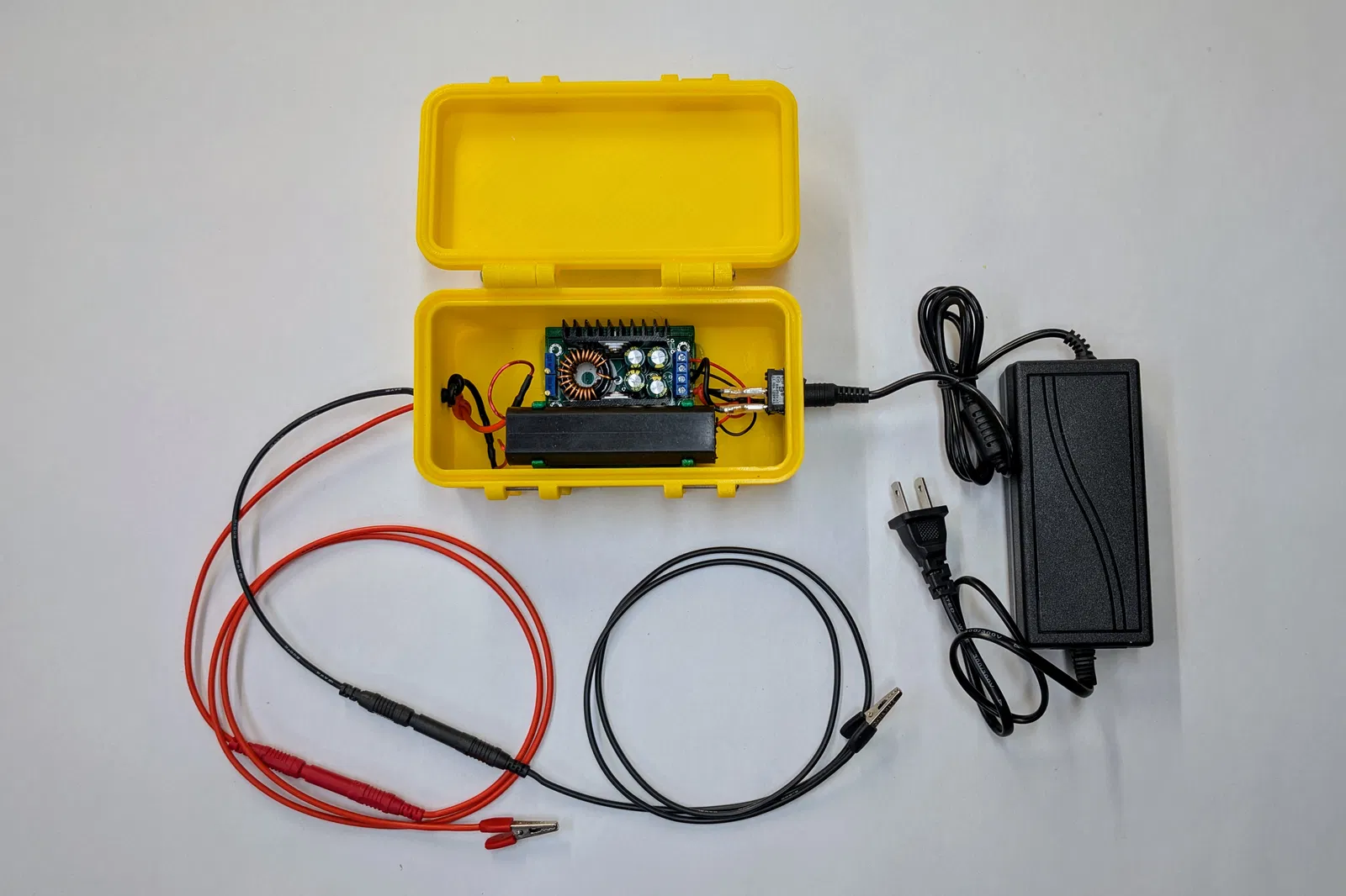 - Mình dùng thêm một công tắc on/off và giắc cắm/đầu nối banana, nhưng bạn hoàn toàn có thể nối trực tiếp. LƯU Ý: Bạn cần có cách để ngắt điện (công tắc, rút phích cắm hoặc dùng bàn đạp chân). Bộ tạo xung hồ quang không được thiết kế để dùng liên tục và sẽ cháy nếu bật mãi. Mình thường dùng từng đợt không quá 10 giây và nghỉ vài giây giữa các lần bằng cách dùng bàn đạp chân giá rẻ. Cách này rất hiệu quả cho các vật thể có kích thước vừa phải.