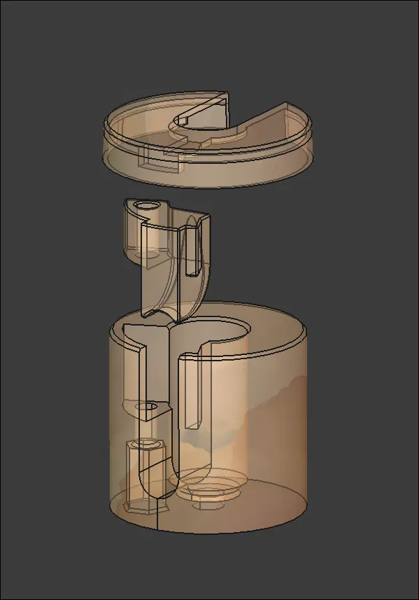 Dù sao thì, nó hoạt động đúng như hình ảnh và cách sử dụng thông thường. Phần chốt được cố định bằng ốc vít M3 và đai ốc lục giác (captive hex nut). Mình dùng ốc M3x20, độ dài như vậy là dư dùng. Lỗ ở đáy/đỉnh có không gian cho một vòng đệm M4. Phần nắp được thiết kế kiểu khớp ma sát (friction fit).