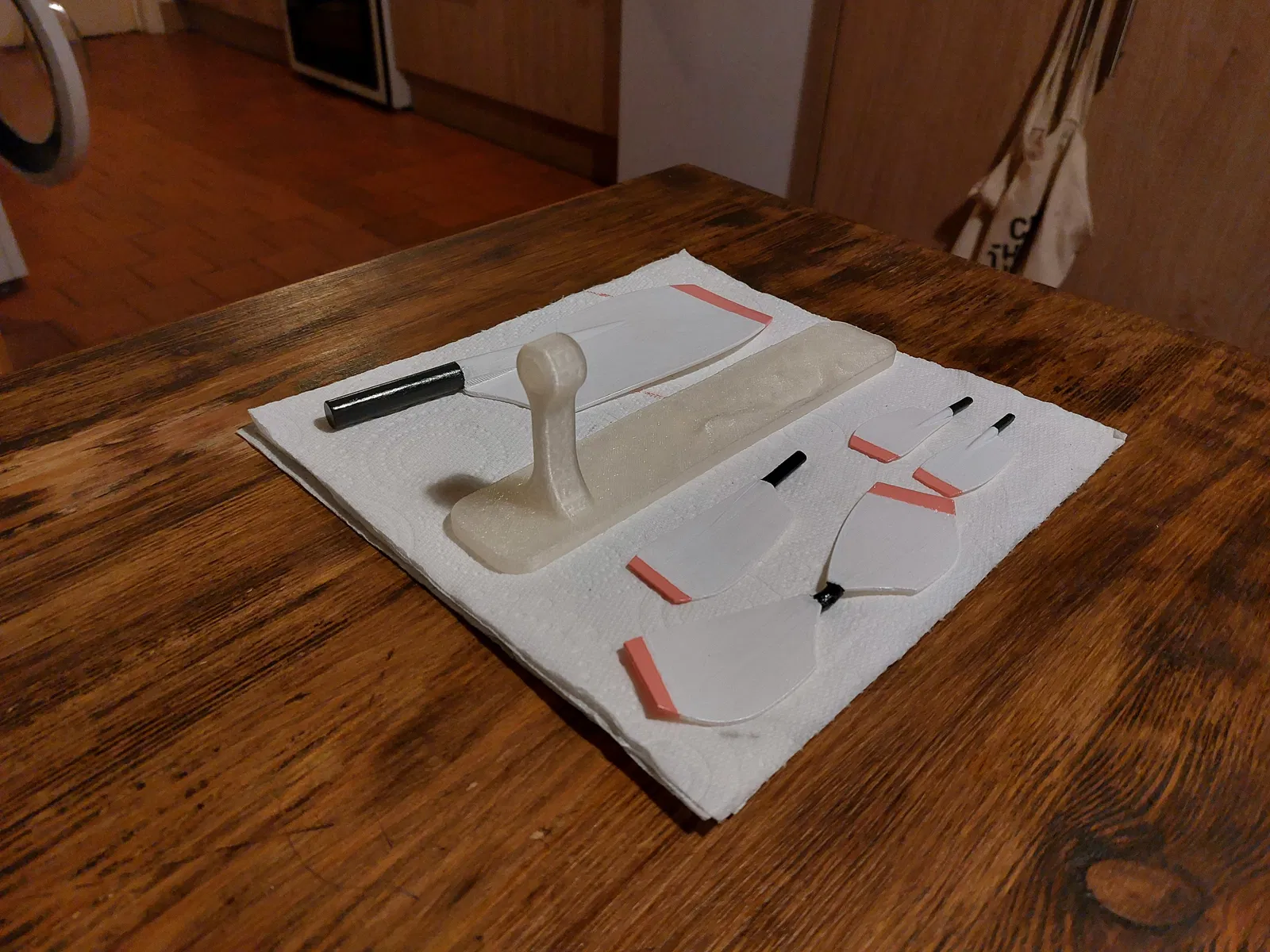 Quy trình in khá đơn giản, chỉ cần dùng support cho phần thân chính của mái chèo (mình khuyên bạn nên in đứng, nghĩa là để vecto pháp tuyến của bề mặt lưỡi chèo nằm trong mặt phẳng x-y để giấu đi các đường layer).