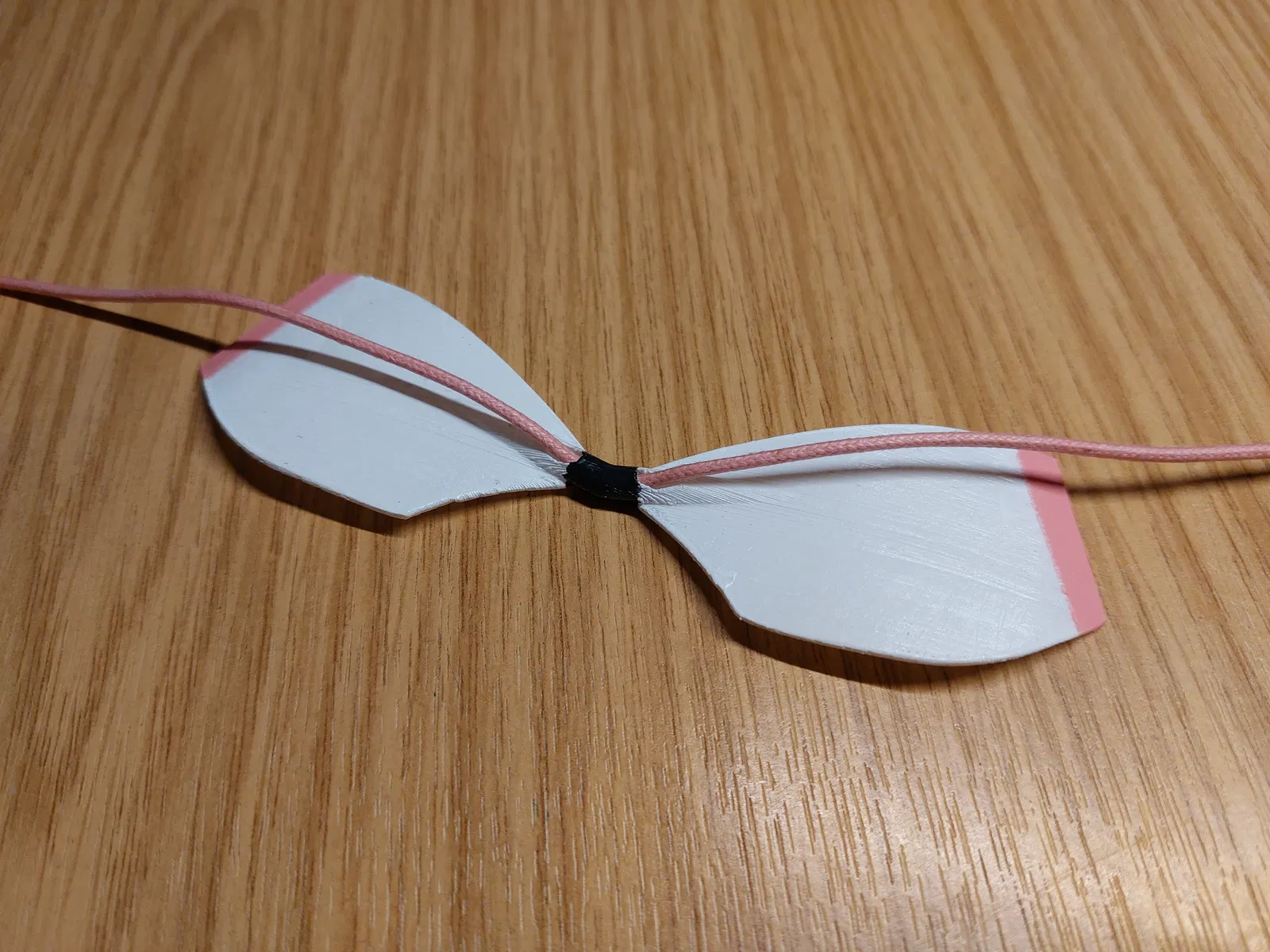 Bạn có thể dùng bất kỳ loại dây nào có đường kính phù hợp (~2.5 mm) để cố định nơ. Thiết kế có một vòng cung nhỏ ở mặt sau để luồn dây (như trong hình).