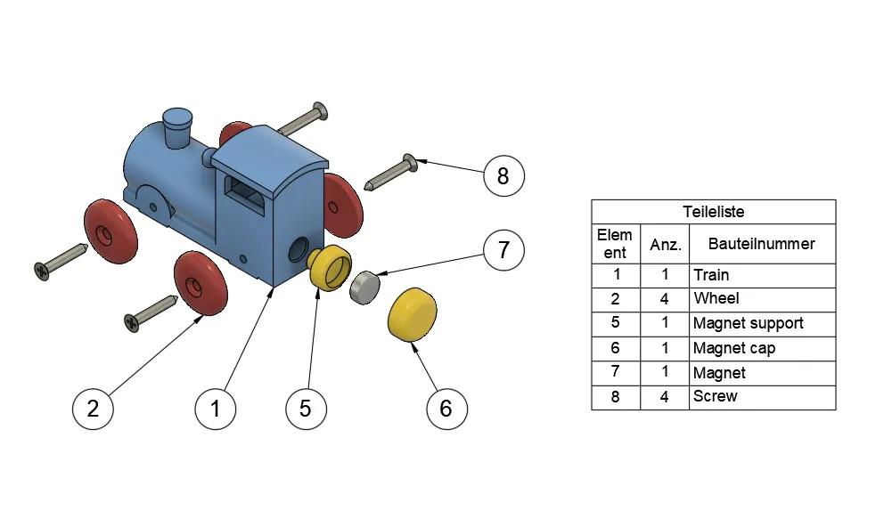 Đầu máy hơi nước (tương thích Brio/Ikea) Bạn sẽ cần 4 ốc vít để đặt mọi thứ lại với nhau và 1 nam châm