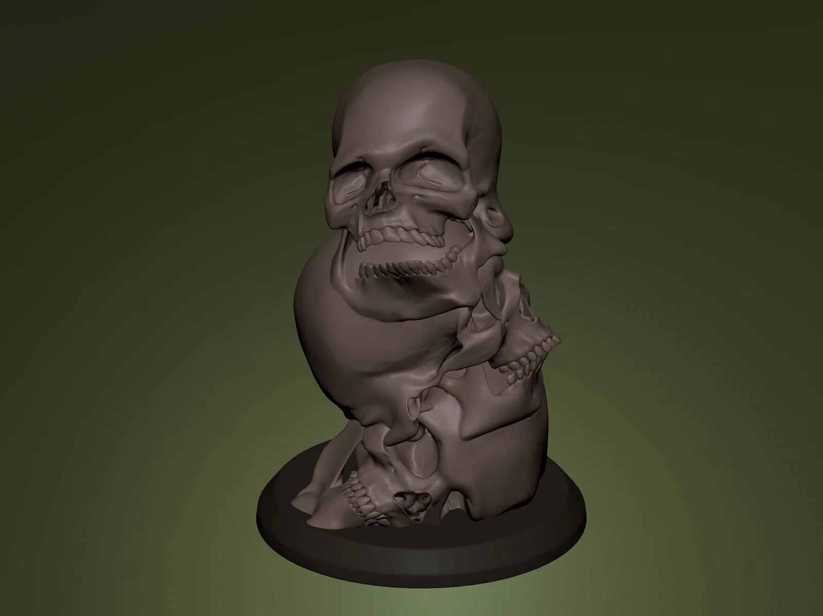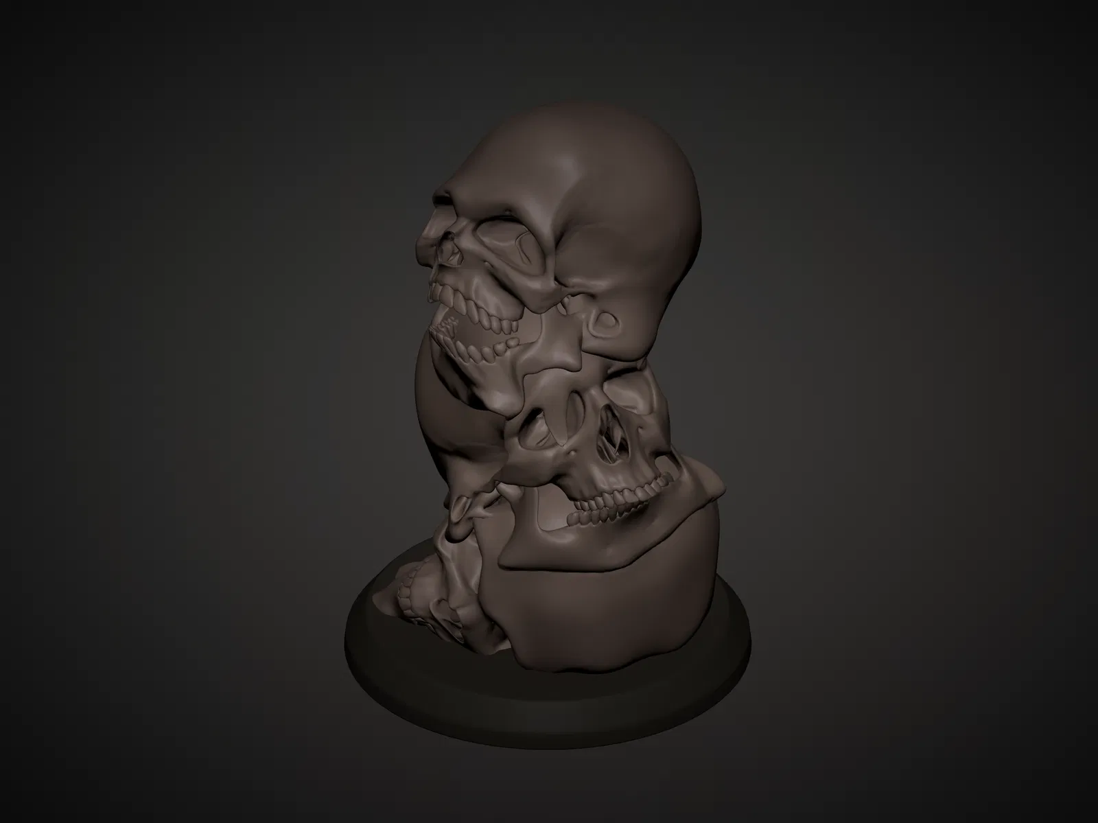 Tác phẩm điêu khắc hộp sọ siêu thực này được mình tạo ra trong Nomad Sculpt như một bài nghiên cứu về cách kết hợp các hình khối hữu cơ và giải phẫu học xếp lớp. Mô hình này có nhiều hộp sọ chồng lên nhau và tan chảy vào nhau, tạo nên một cấu trúc uyển chuyển, rất hợp để làm đồ trang trí bàn làm việc, kệ sách hoặc in theo phong cách resin nghệ thuật.