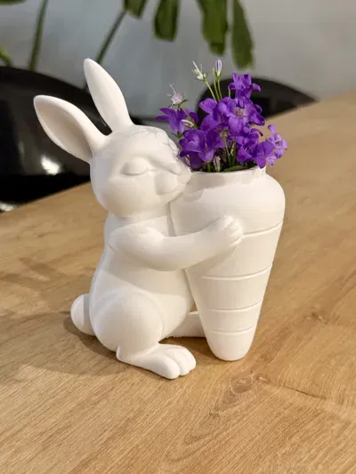 Mô hình bình hoa trang trí chủ đề Phục sinh siêu đáng yêu với hình ảnh chú thỏ ôm củ cà rốt. Phù hợp để làm đồ trang trí trong nhà, cắm hoa giả hoặc dùng kèm ống thủy tinh nhỏ cho hoa tươi.